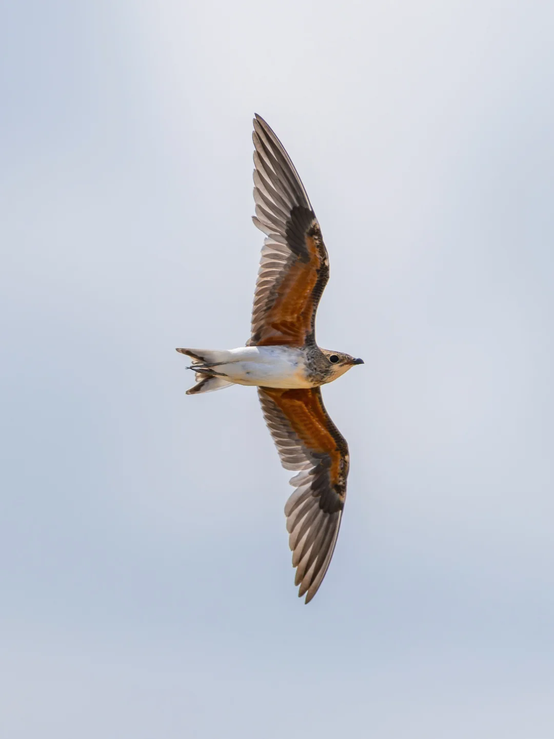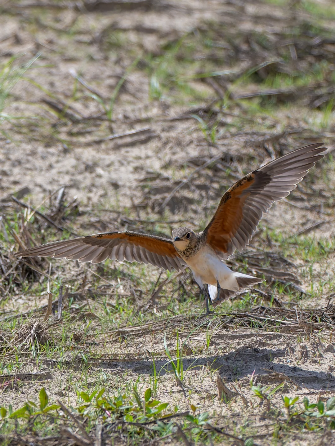 原创拍摄于2025.06 普通燕鸻,Oriental Pratincole,鸻形目燕鸻科燕鸻属。英文名直译应该是东方燕鸻,是一种很像燕子的鸻鹬类,非常优雅。 普通燕鸻夏季在我国的东部地区有繁殖,没想到正好在广东的一个海边荒地上就偶然撞见了繁殖的普通燕鸥,这一群已经有不少今年的幼鸟,它们似乎正在学习飞行,实在是太可爱了。幼鸟虽然没有黑项圈,同样是非常的优雅,特别是飞行时栗色的翼下覆羽尤其漂亮。 希望他们能够健康长大,度过第1个冬天,明年再来繁殖。