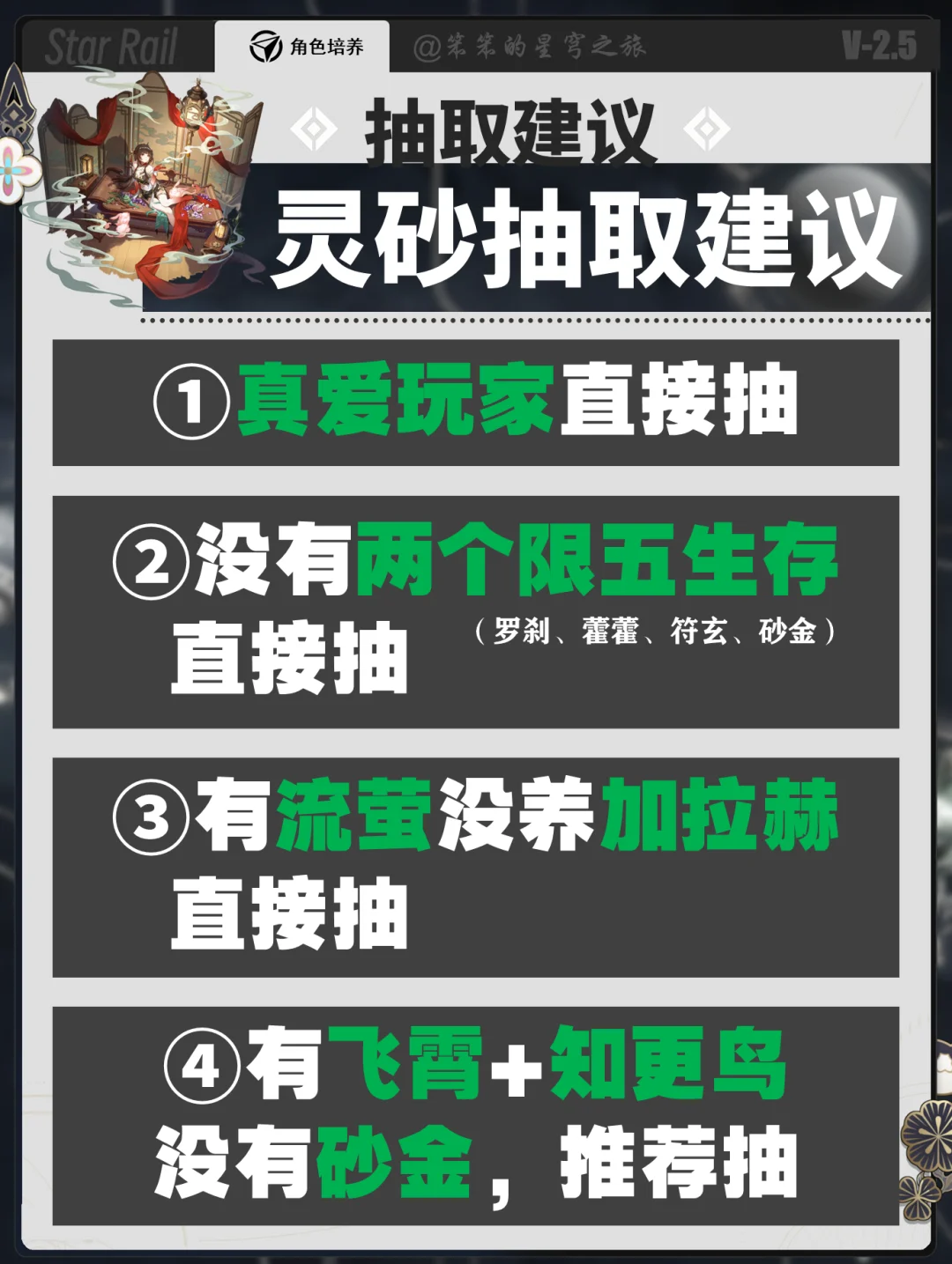 🐱大家好,我是笨笨的铲屎官 今天给大家带来的是灵砂的抽取建议 内容创作自创作体验服 灵砂作为限定五星丰饶 肯定绕不开和其他限定生存比较 笨笨整理所有的五星生存位 还有加拉赫的特点 希望对你有用哦