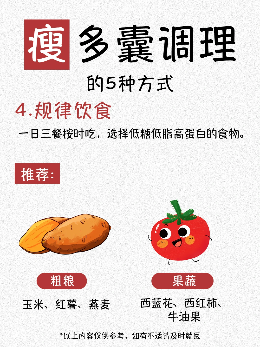饮食对我帮助真的超级大!多吃一些天然的、低GI的食物,比如燕麦、蔬菜、水果还有瘦肉。减少糖分和油炸食品的摄入,真的会让你感觉精力满满。而且,健康的食物不仅会让你瘦下来,还能改善内分泌哦!