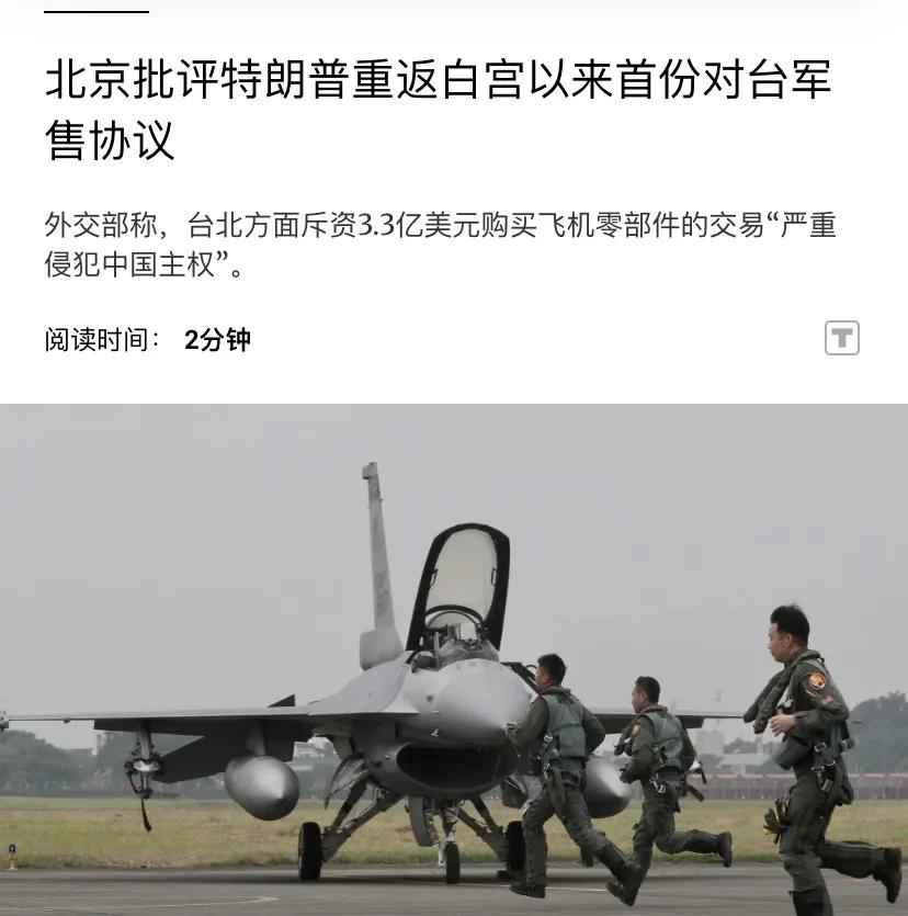 11月14日,五角大楼宣布,美国已批准对台出售价值 3.3 亿美元的战斗机零部件。这是特朗普在今年1月份重返白宫以来,美国第一次对台售武。因而无论是象征性还是实际产生的影响都具有很大风险。