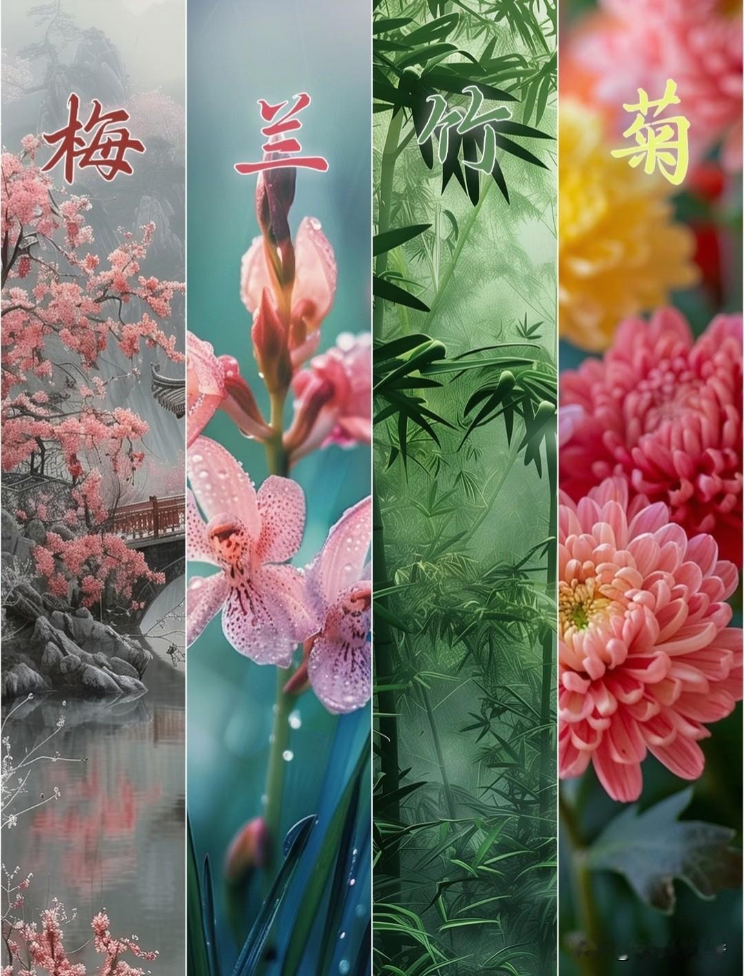“梅兰竹菊”是花中四君子,与“琴棋书画”同为传统雅事,意境高度匹配。