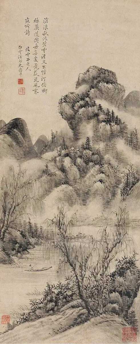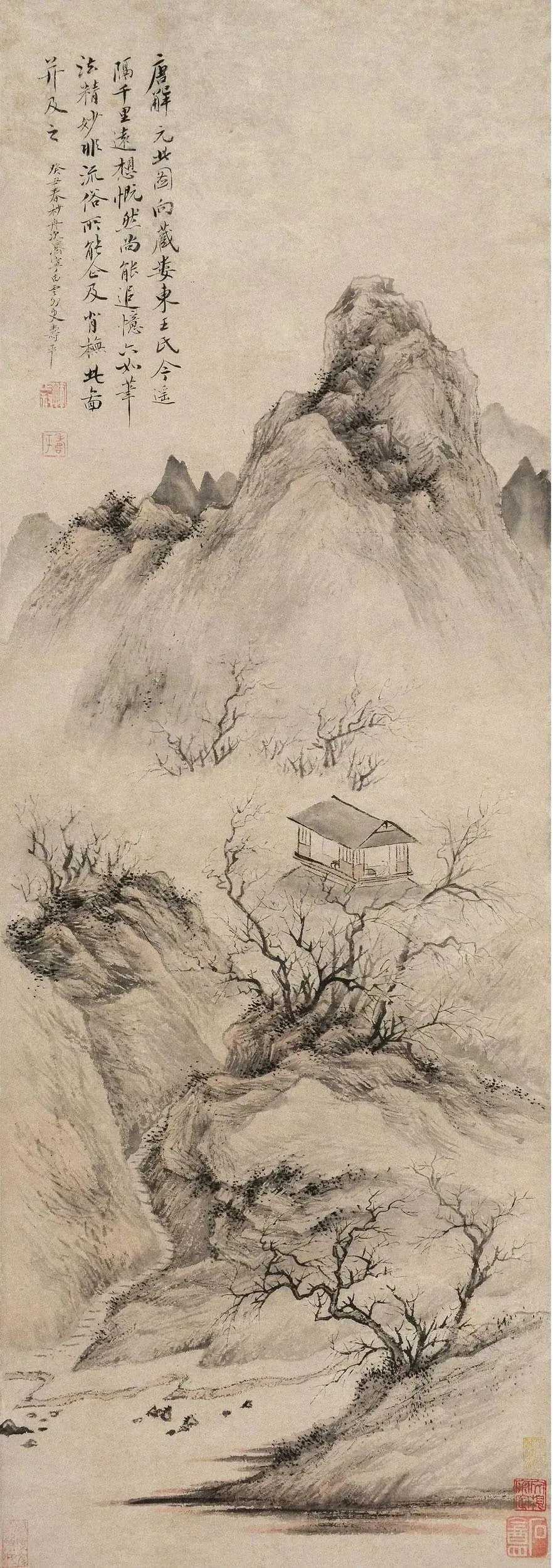 清 恽寿平山水画。恽寿平人们都熟知他被誉为“写生正宗”的没骨花卉。其实作为“清初