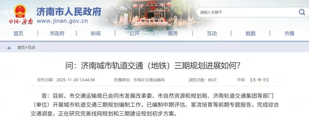 根据济南市城乡交通运输局最新答复,目前三期规划编制已完成中期评估、客流培育等前期专题,并开展了大规模综合交通调查,线网规划及建设规划初步方案正在完善中。这意味着规划已从宏观目标走向具体线路落地的实质性研究阶段。