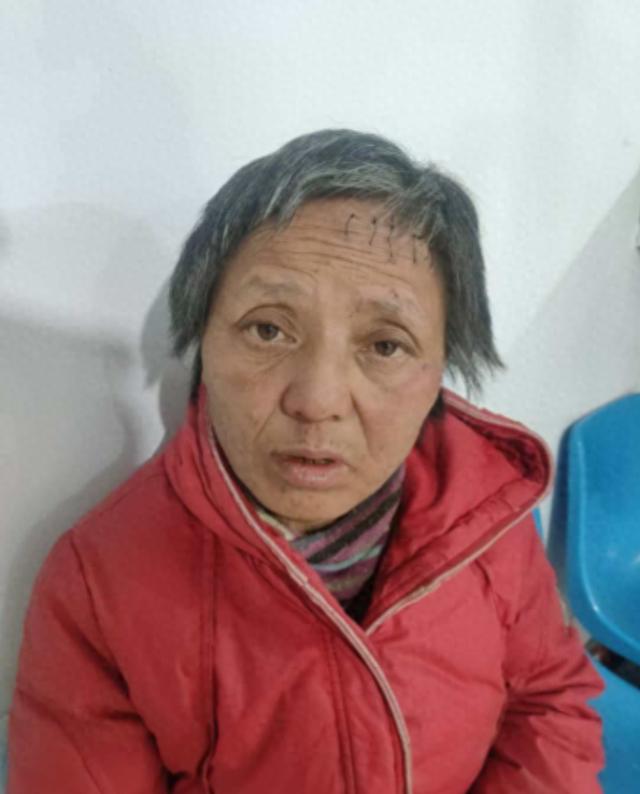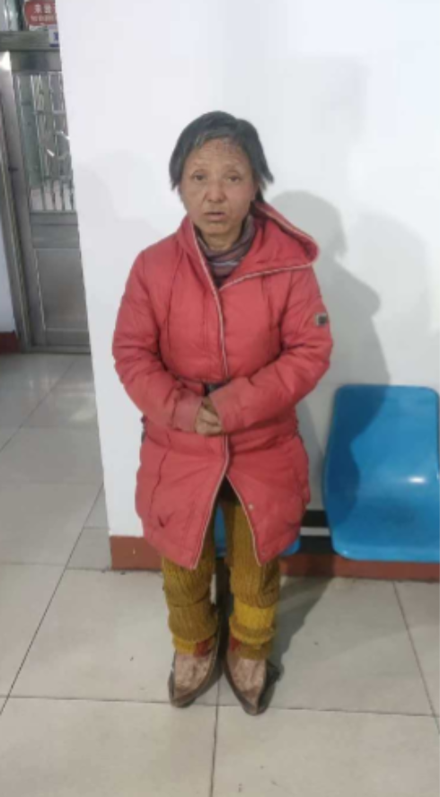受助者特征:疑似精神异常,穿红色棉袄、黄色毛线裤,额头可见明显外伤(有缝合痕迹)