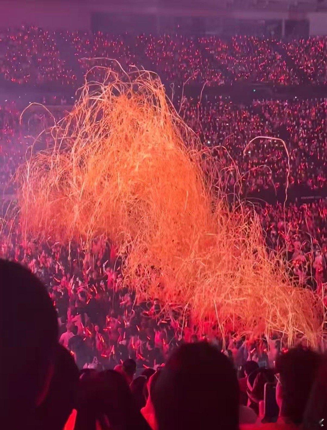看个陶喆连织带拿的 第一次参加陶喆演唱会,没想到还能收获一件限量版彩带毛衣。彩带飘落时像下雪一样浪漫,大家一边编织一边互动,现场温暖又热闹。
