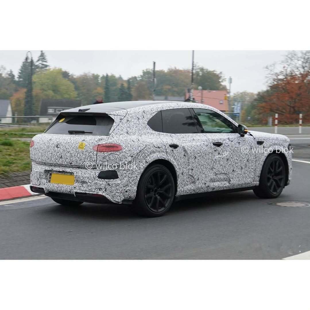 宾利的纯电SUV路试中,前挡风玻璃有一组三目摄像头,但车尾怎么看有点观致汽车的意思……