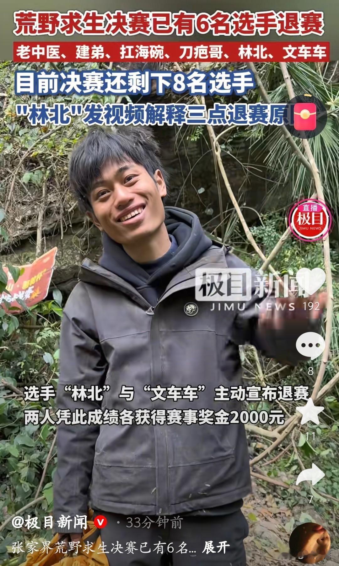 明明能拿2000奖金硬撑,他偏说“体验过就够了”,这松弛感真的好戳人!荒野里啃冷食、睡草地,小白能熬到现在已经赢麻了好吗?看着他和文车车笑着挥手离场,突然觉得比起死磕冠军,懂停步才是成年人的体面。 原来不是所有坚持都要赌到最后,“我知足了”才是最舒服的通关方式啊!