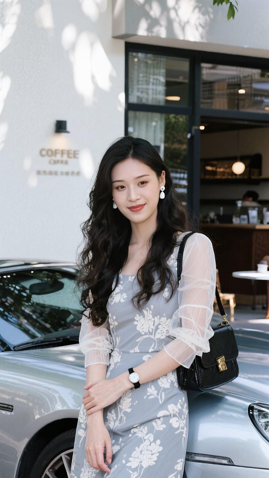明艳黄衣,绽放街头时尚魅力在繁华都市的街头,一位女子以一袭亮眼的黄色套装成为