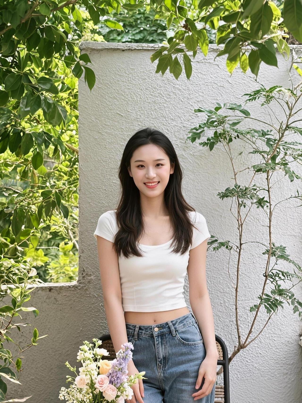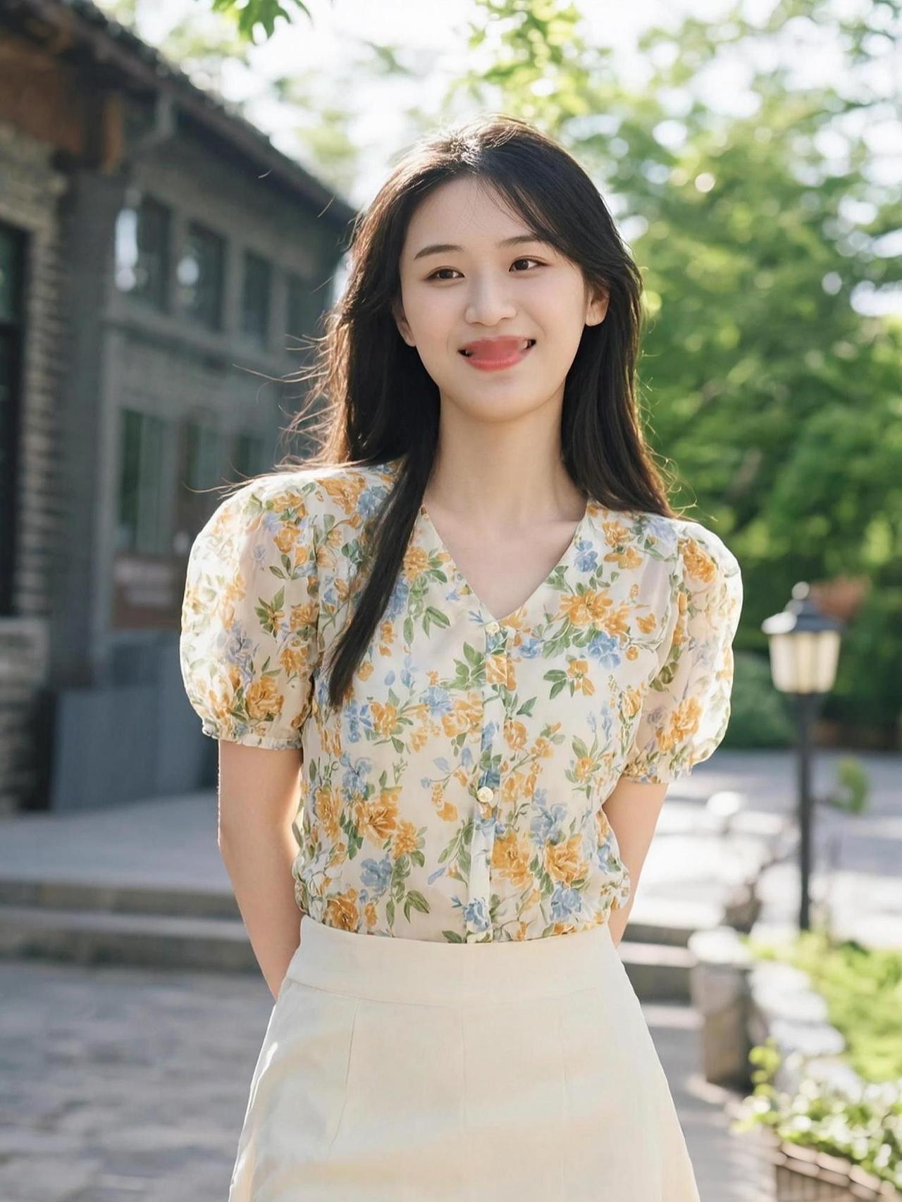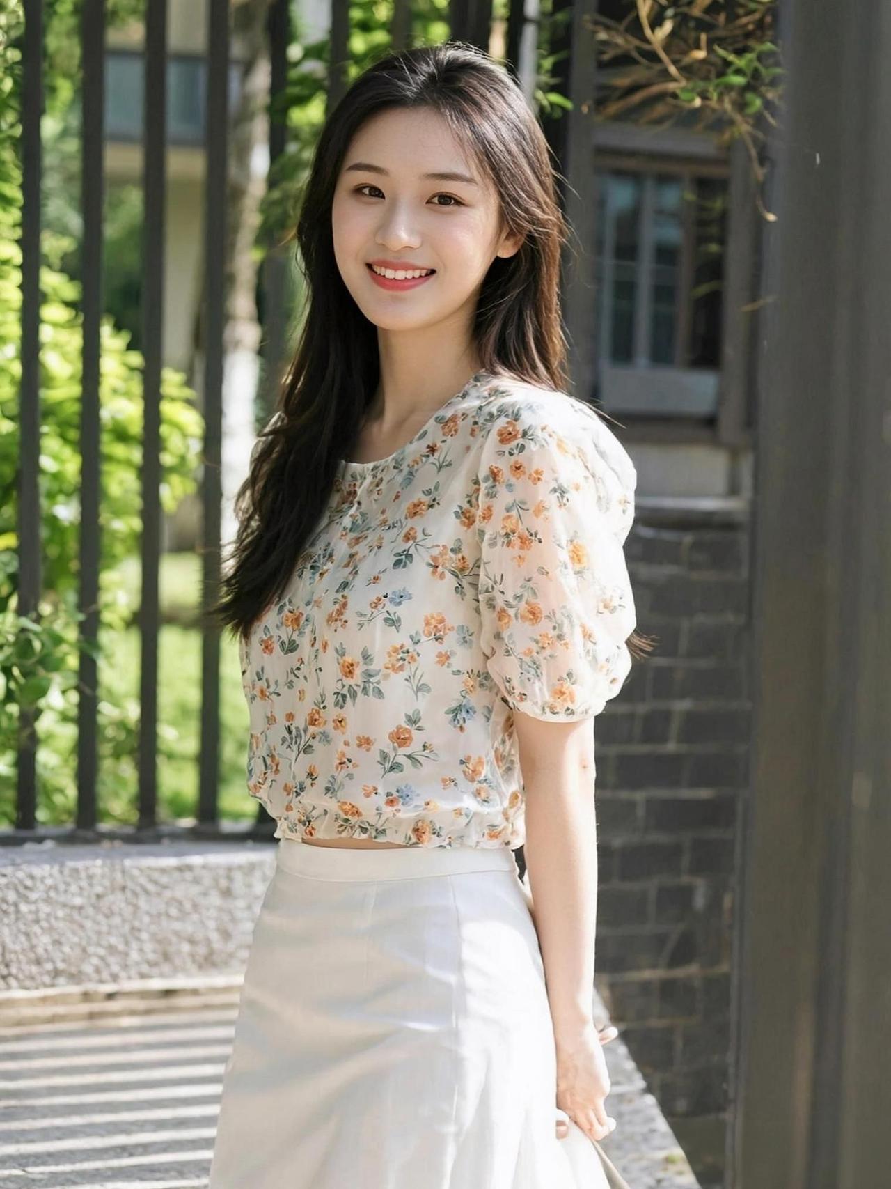 1. 【粉裙晴日】 粉裙裁晓露,花蔓绕肩柔。 风过车尘浅,笑开一夏稠。 2. 【白衫青蔓】 晴光缠叶影,素衫衬晚风。 花束沾云色,笑里夏声轻。 3. 【庭中花衣】 软袖叠春枝,方领落闲香。 厅前灯影暖,裙角裹晨光。 4. 【林径轻衫】 树影筛金缕,粉衫裹软风。 马尾摇秋意,笑里见晴空。 粉裙花影 紫裙时尚照 明媚街拍 粉裙自拍 时尚花裙人像 粉裙人像照