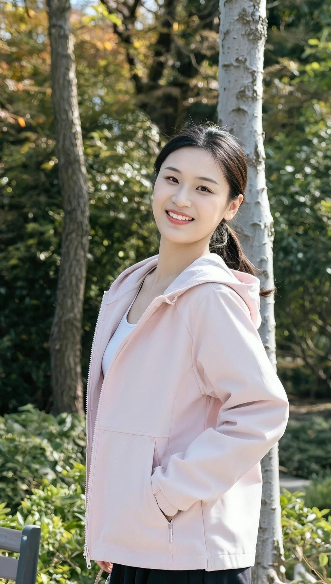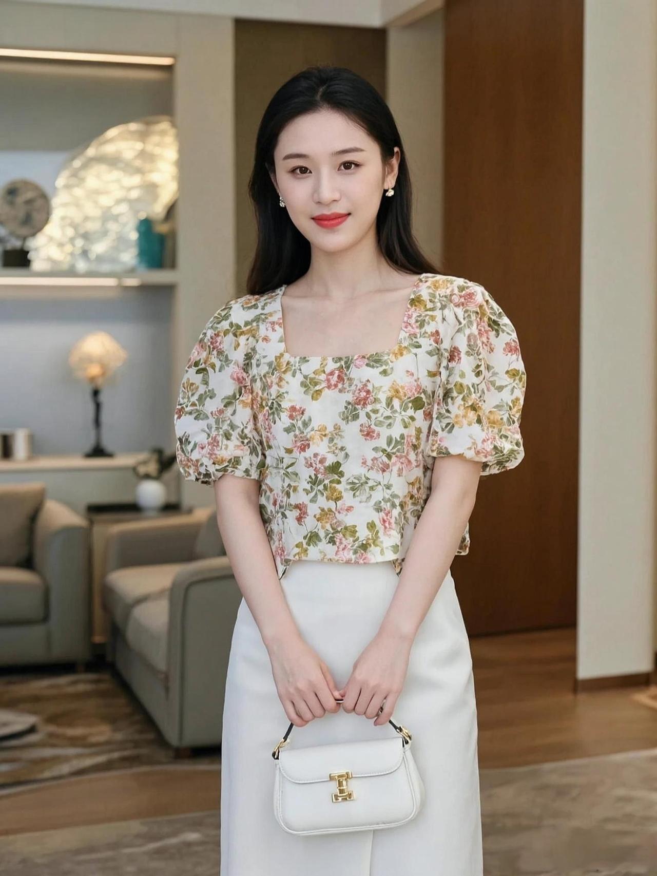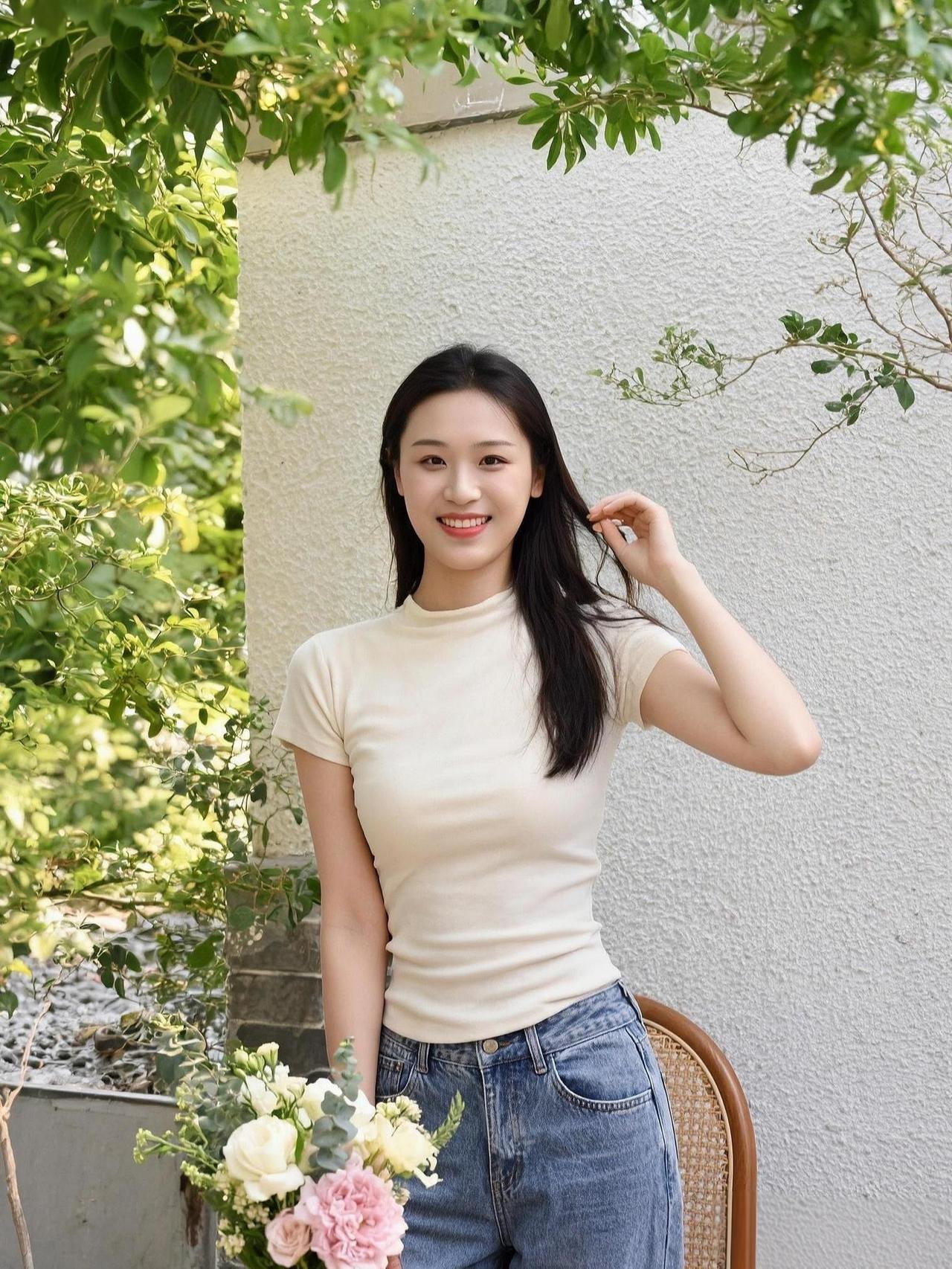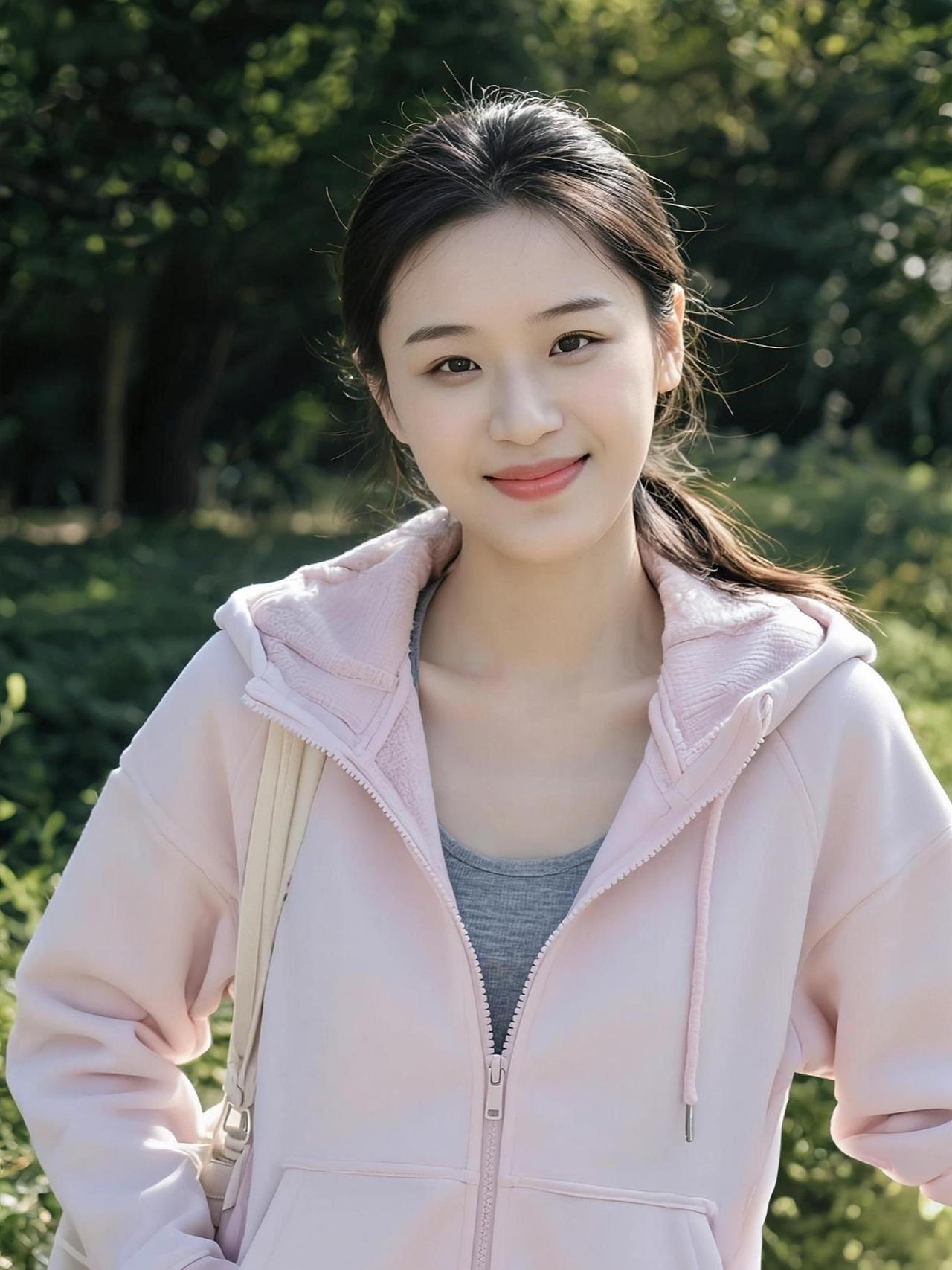 1. 【粉裙晴日】 粉裙裁晓露,花蔓绕肩柔。 风过车尘浅,笑开一夏稠。 2. 【白衫青蔓】 晴光缠叶影,素衫衬晚风。 花束沾云色,笑里夏声轻。 3. 【庭中花衣】 软袖叠春枝,方领落闲香。 厅前灯影暖,裙角裹晨光。 4. 【林径轻衫】 树影筛金缕,粉衫裹软风。 马尾摇秋意,笑里见晴空。 粉裙花影 紫裙时尚照 明媚街拍 粉裙自拍 时尚花裙人像 粉裙人像照