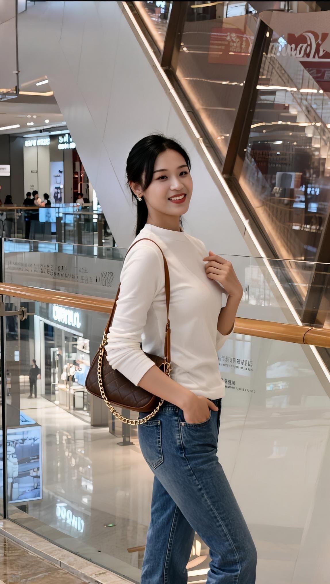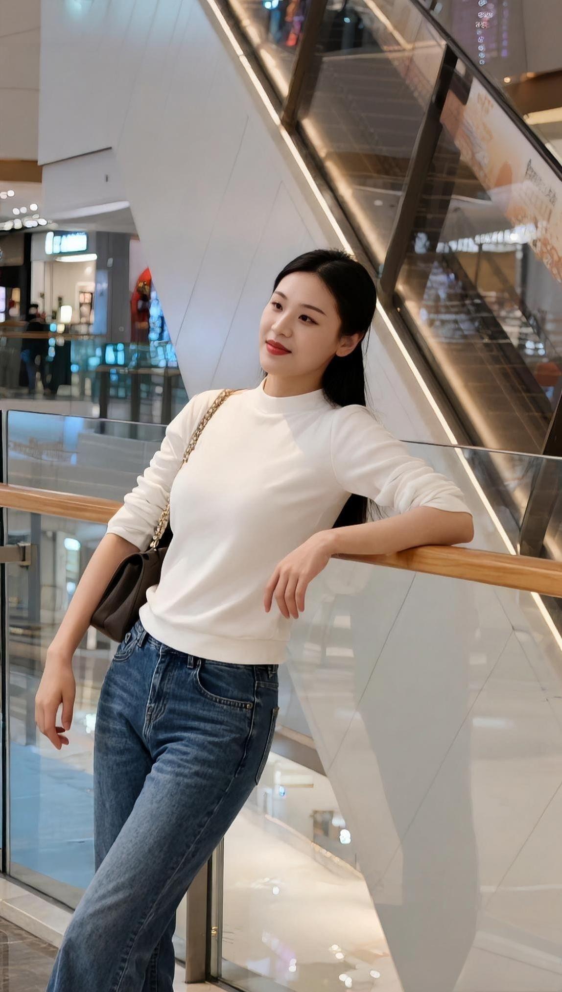 街拍即景 暖光浮掠素衣肩, 链挎棕囊意自闲。 凭遍璃栏人独立, 风捎烟火入眉弯。 丽人风情街拍 人文街拍摄影 街拍照景 街拍风光 明媚街拍 随街拍照 秋韵街拍