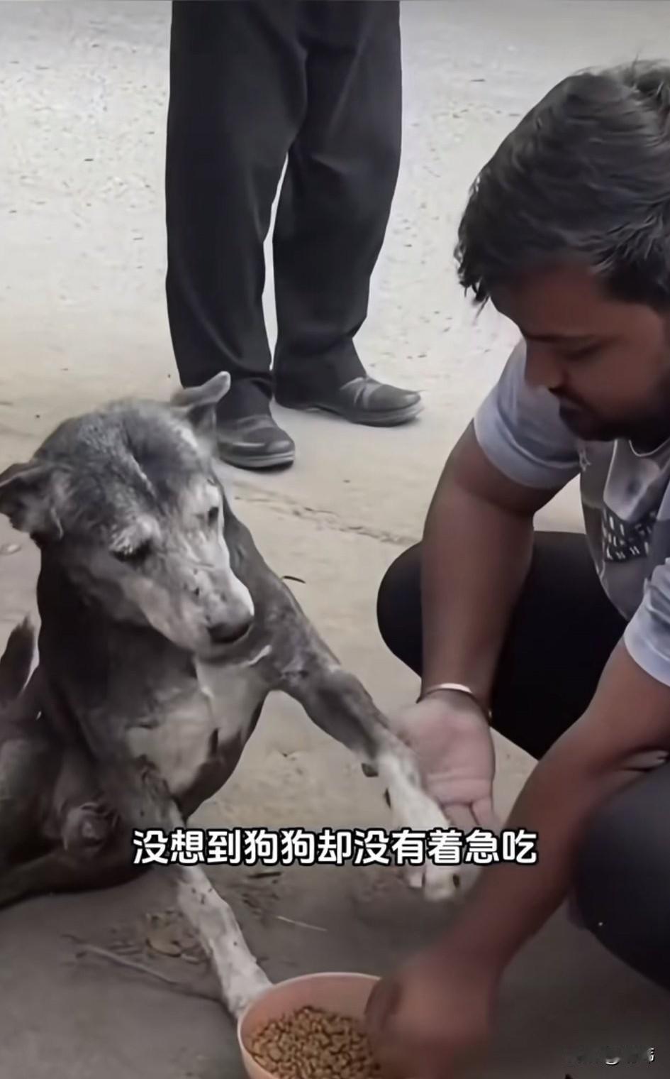 太可怜了!一位大叔非常有爱心,经常投喂流浪狗流浪猫,他发现有只可怜的残疾流浪狗经常被欺负,吃不上饭,于是他就专门喂给它吃。 他轻轻地搂住狗狗,然后拿出一大碗狗粮,放在狗狗面前,没想到狗狗却没有着急去吃,只见它伸出爪子似乎和大叔握手,之后在大哥抚摸了它的头,叫它吃,它才开始大口大口地吃了起来。吃完后还不停地朝他鞠躬,一直在感谢大哥的帮助,这真的是一只知恩图报的好狗狗!