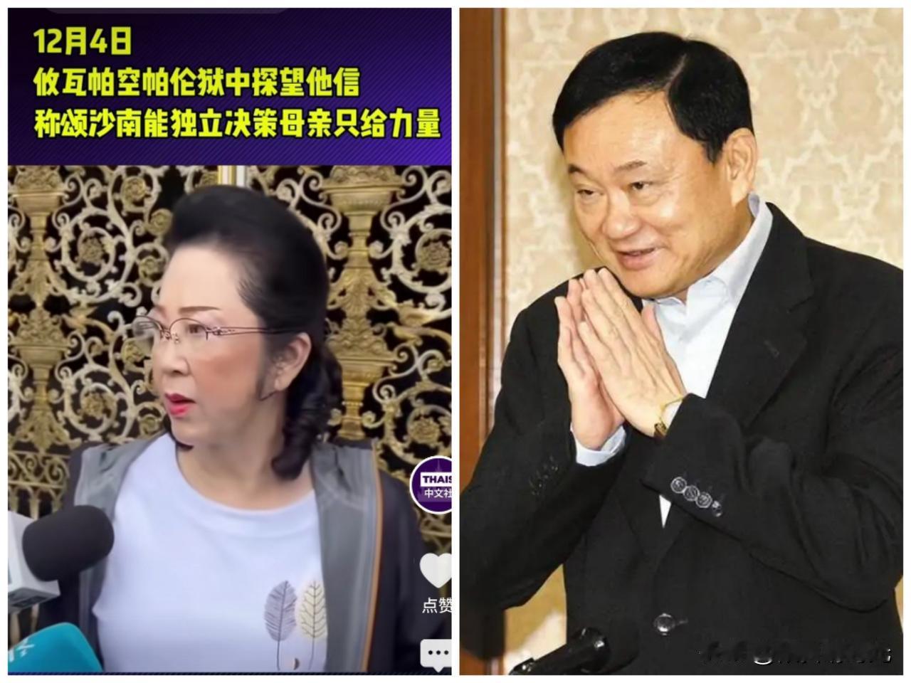 泰国前总理他信妹妹攸瓦帕透露他信身体最新状况,同时对儿子颂沙南将担任为泰党籍总理
