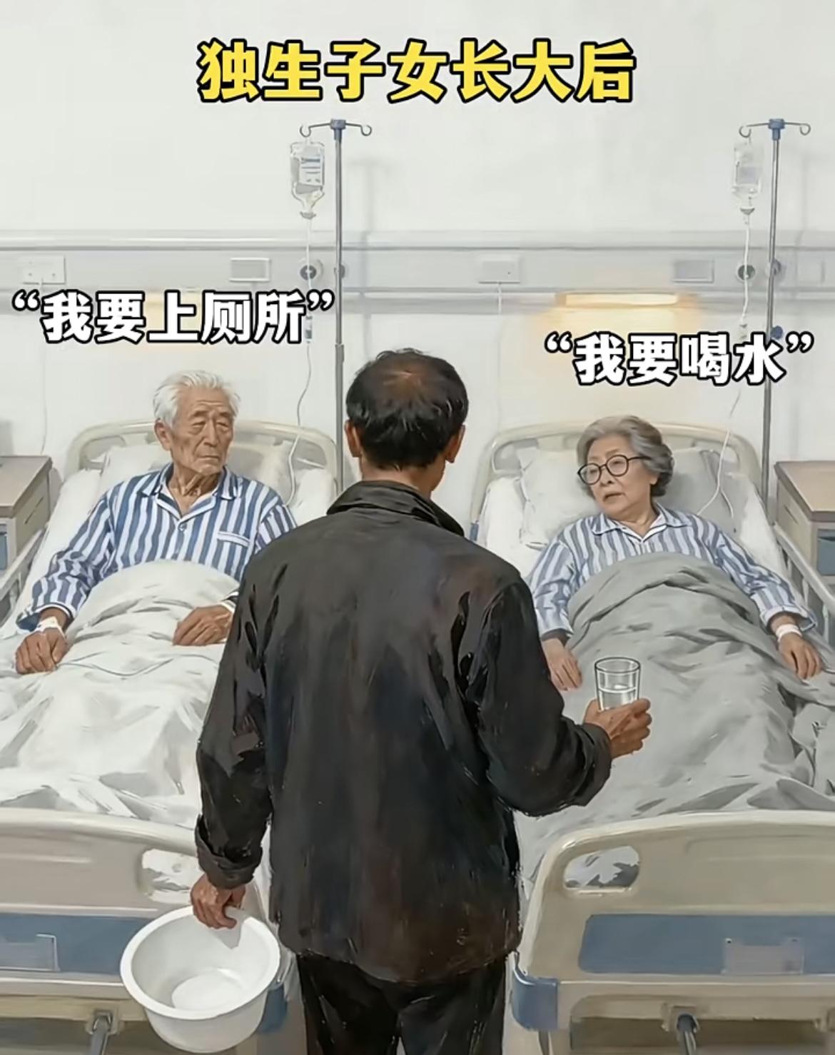 独生子女的“身份福利”:主打一个“前后落差比跳楼机还猛” • 小时候生病:爸妈端蕉擦手+全程陪读,病床是我的专属VIP包厢,玩具零食buff叠满 • 长大后:左手端水右手拎盆,病床是我的“双线作战工位”,爸妈的需求比甲方催方案还密集 当年集全家宠爱于一身,如今扛全家重担于一人——这哪是长大,是从“团宠选手”直接晋升“全能后勤主管”啊
