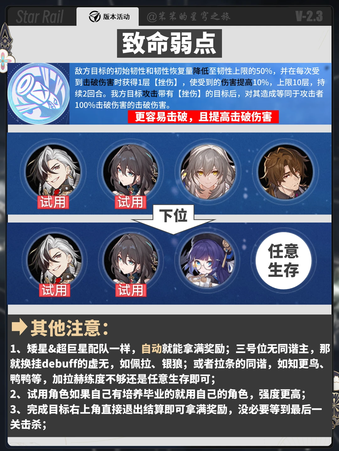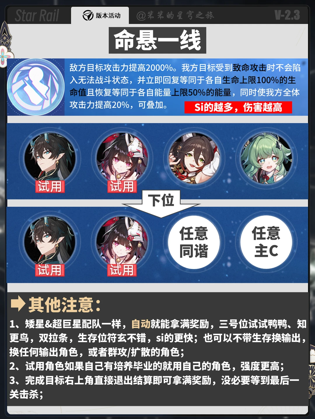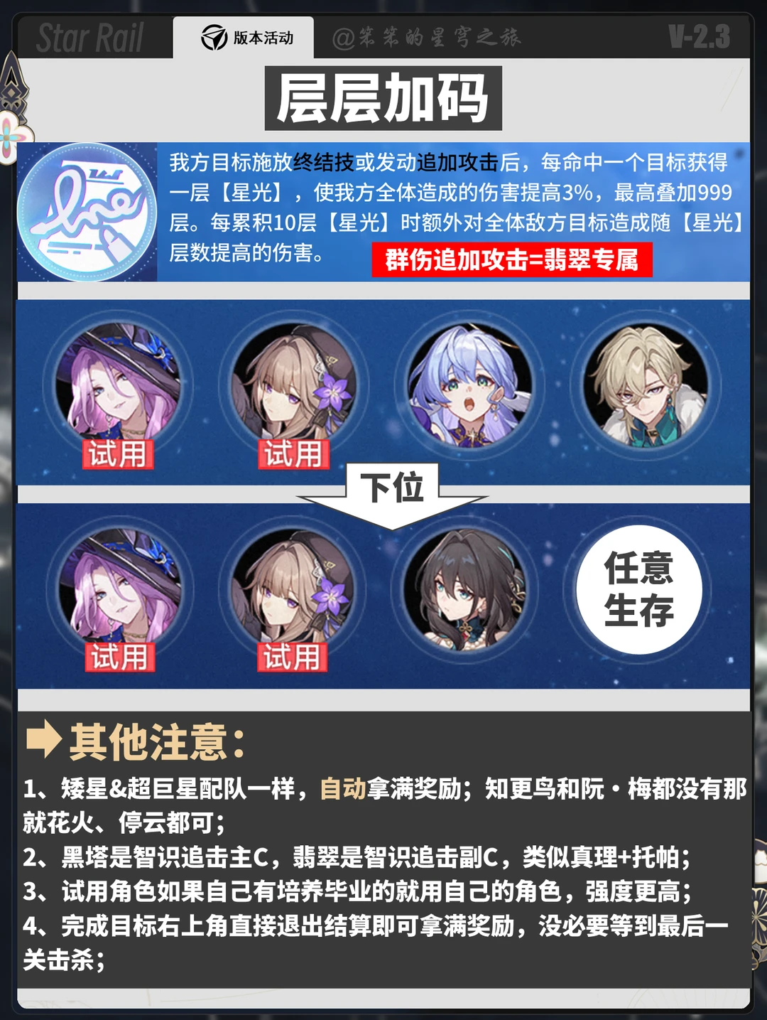 🐱大家好,我是笨笨的铲屎官 崩铁上线了新活动了 每天上线一个关卡,一共8个关卡 笨笨每天都会更新哦 有需要的插个锚点