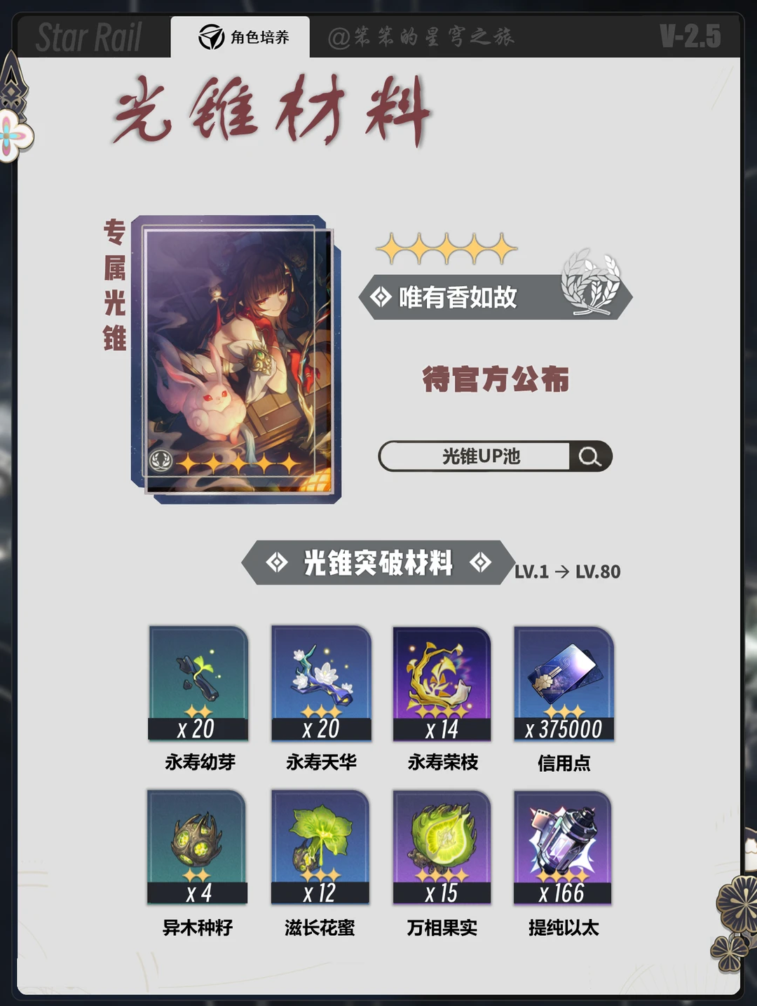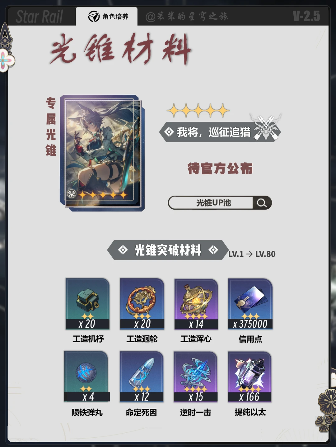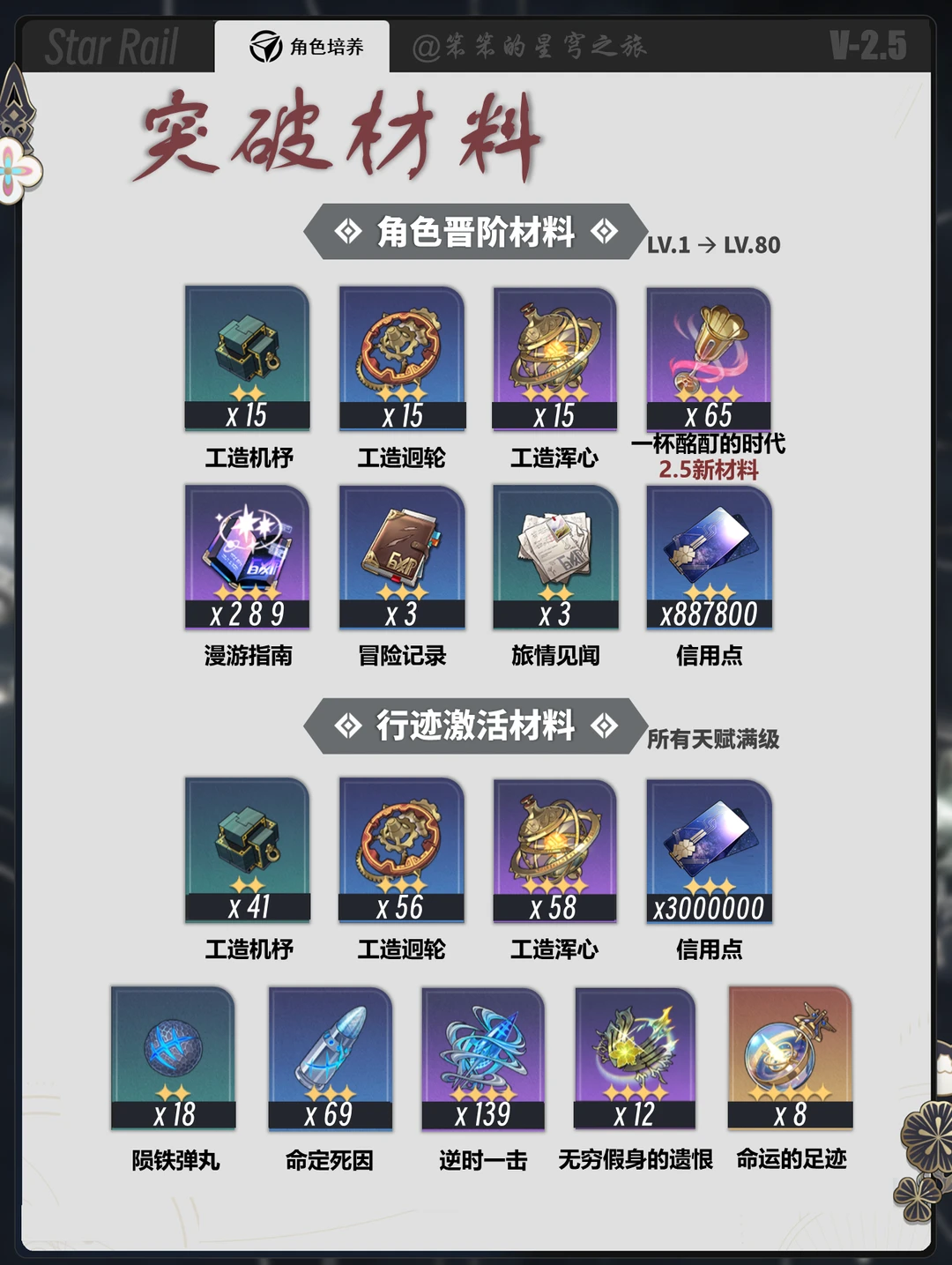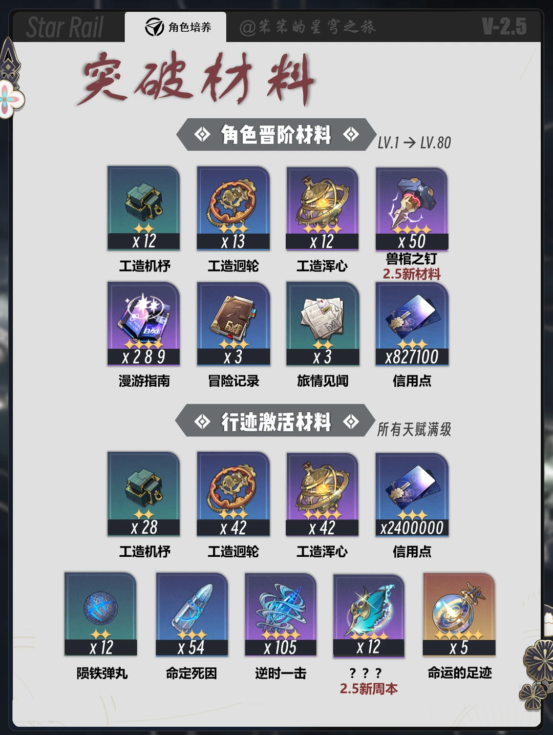 🐱大家好,我是笨笨的铲屎官 今天给大家带来的是2.5新角色 飞霄、灵砂、貊泽的晋阶材料 有需要的开拓者可以提前准备起来了