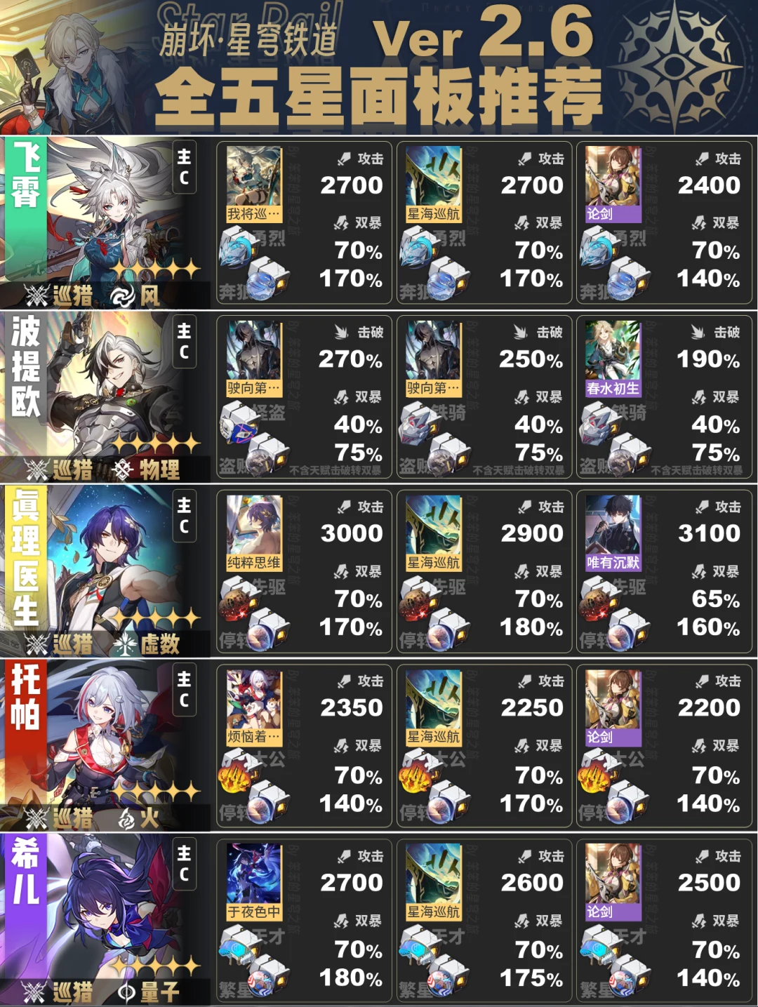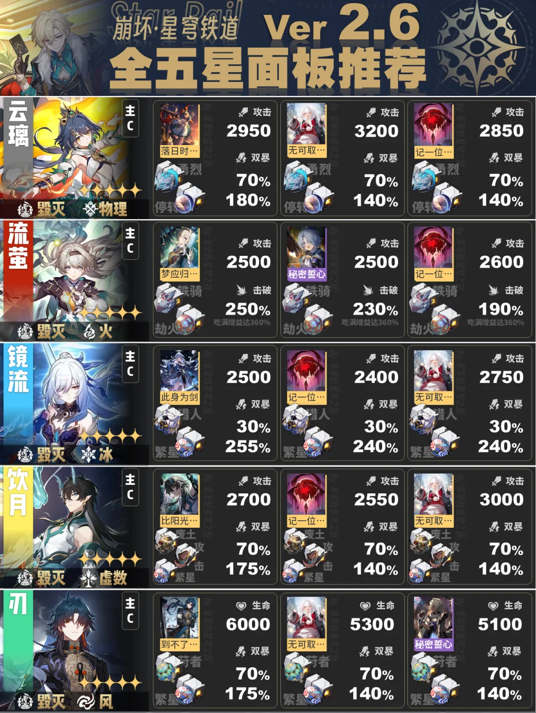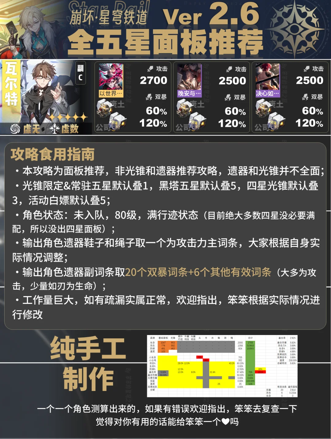 ⑤输出角色遗器副词条取20个双暴词条+6个其他有效词条