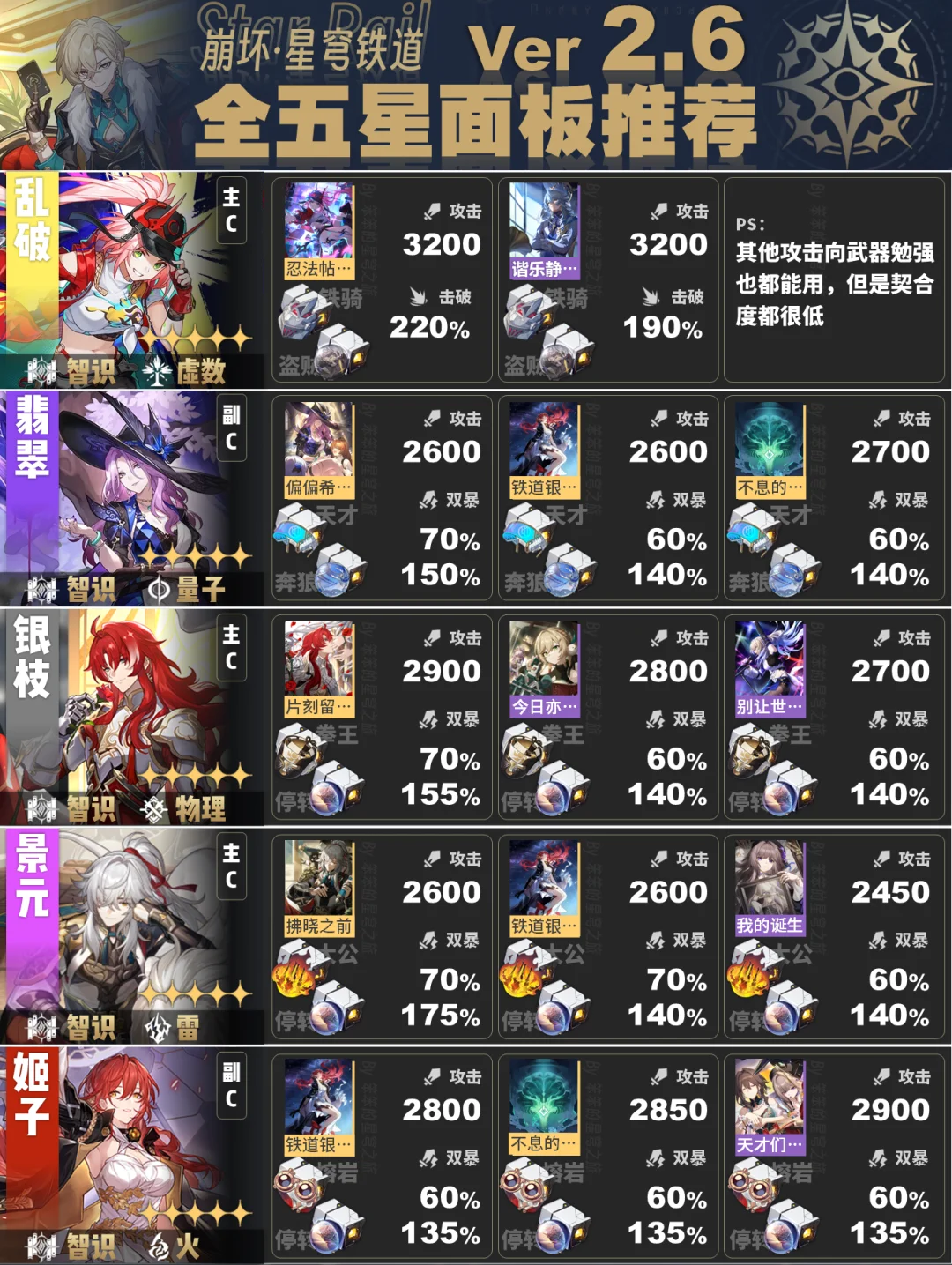 (目前绝大多数四星没必要满配,所以没出四星面板);