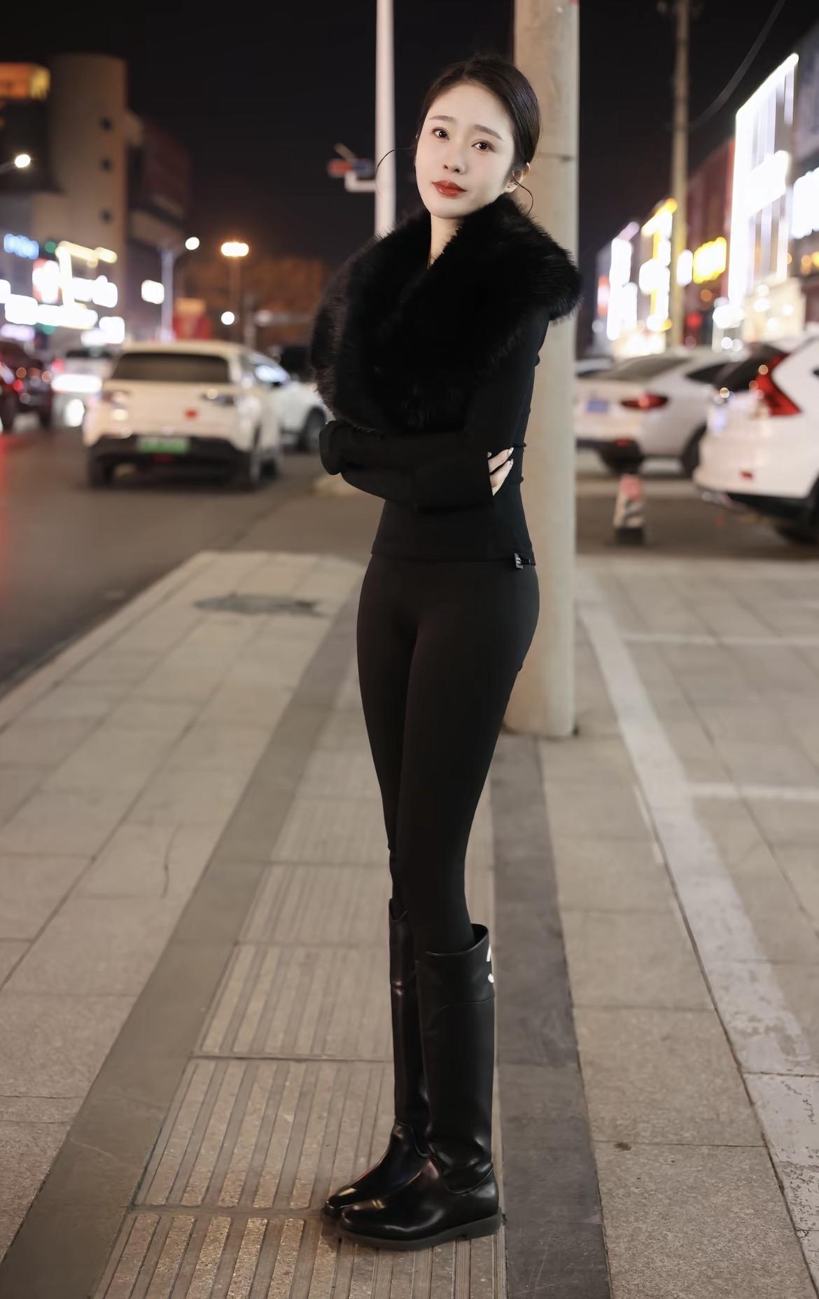 机车女孩的酷炫穿搭,黑色紧身裤与短款T恤的完美搭配,尽显时尚与个性!🏍️💃?