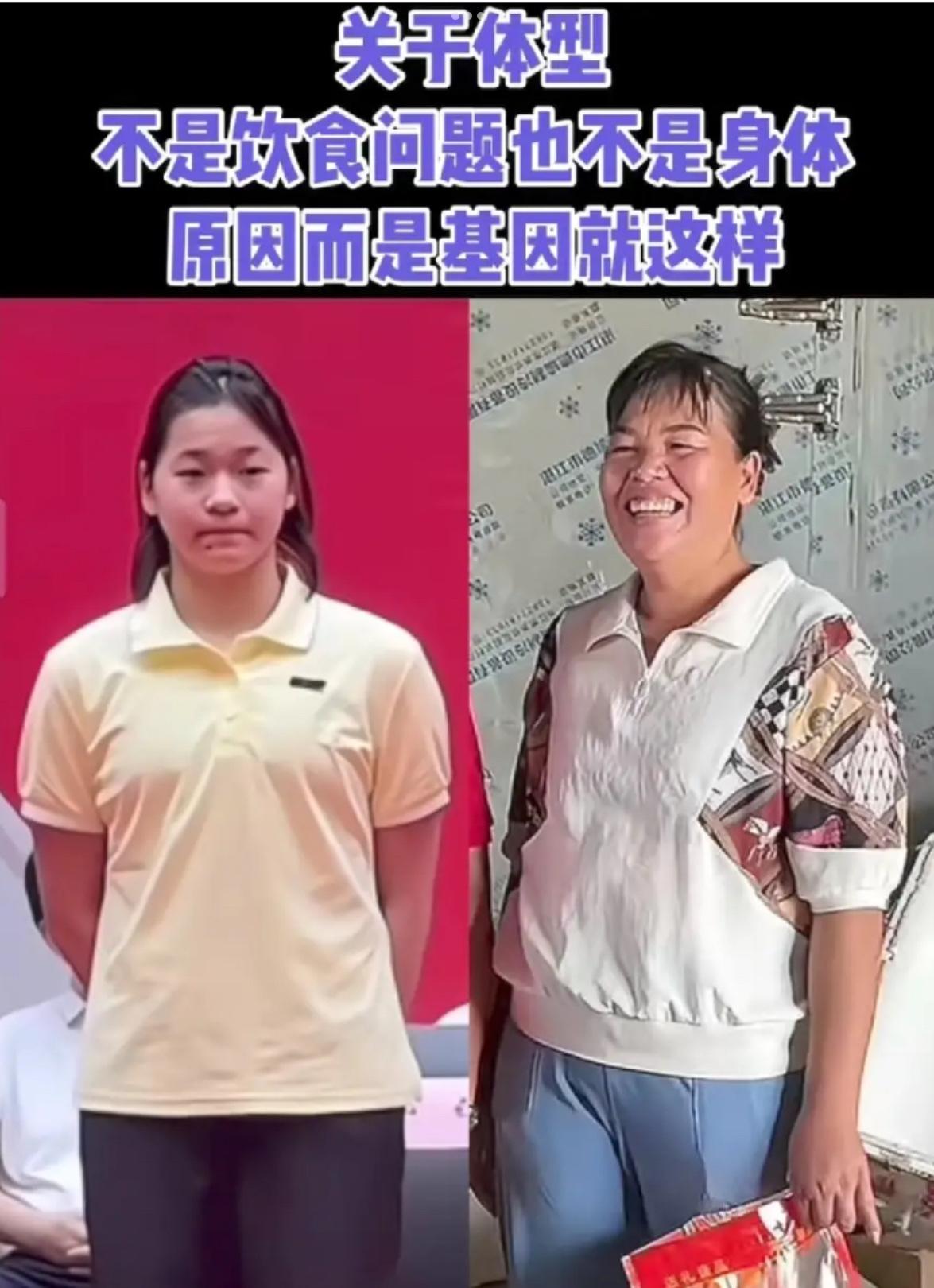 遗传基因的影响确实有科学依据。 陈芋汐的体形与她妈妈非常相似, 全红婵的身材也
