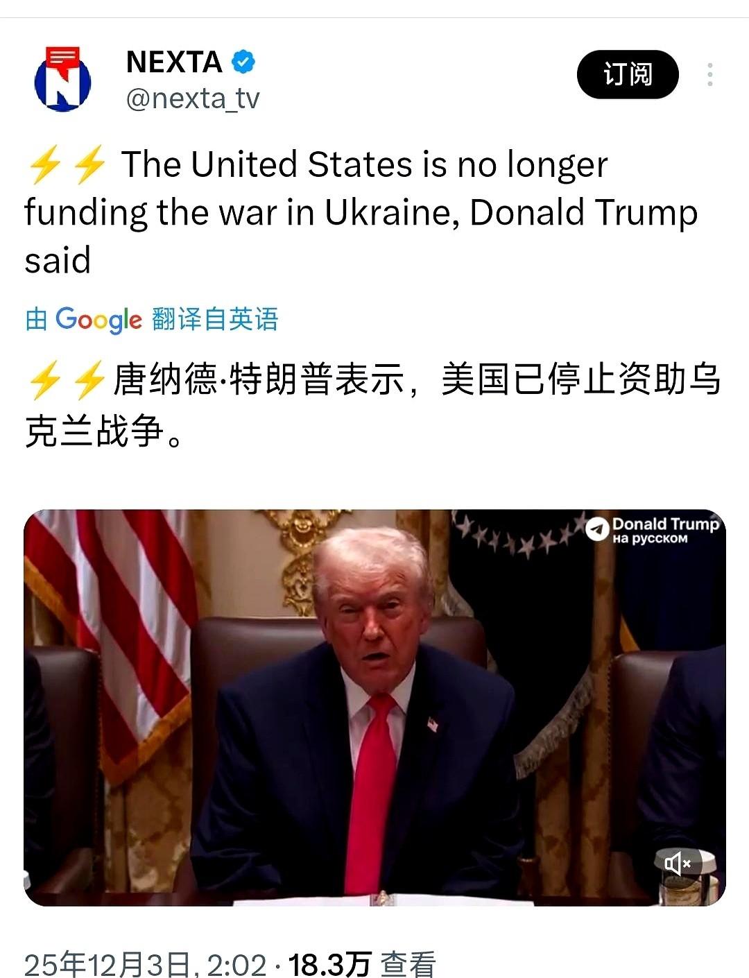 钱,说停就停了。 更狠的在后头,连“眼睛”都给你抠了。 什么意思?就是美国不光不给钱了,连情报都不共享了。你乌克兰手里的“海马斯”,没了坐标,跟个高级点的窜天猴有啥区别?你那“爱国者”防空系统,没了预警,就是个立在城里的铁疙瘩,等着挨炸。 这一下,等于直接把人从ICU的呼吸机上给拔了管子。 很多人骂特朗普商人本性,没道义。 嗨,我说句扎心的话,国际关系这牌桌上,什么时候有过真正的“道义”?无非是“利益”罢了。 拜登那边砸了几百亿,听了个响,连个水花都没见着。在特朗普这种老江湖看来,这不就是个无底洞吗?一边是战场上没啥进展,一边是后方腐败新闻满天飞,这笔“投资”,傻子才继续。 你看人家俄罗斯,多会来事儿。就在美国要“断奶”前,啪,一个漂亮的军事行动,战果直接拍你脸上。这不就是递刀子嘛,等于给特朗普的决定书上,又盖了个“英明神武”的章。 最逗的是欧洲。 美国前脚刚走,欧洲后脚就跳出来喊:“大哥别慌,我顶上!” 怎么顶?拿什么顶?自己家里的弹药库都快搬空了,经济也不景气,现在说要凑几千亿出来……听听就得了。 说白了,欧洲这帮人,一直是跟在美国屁股后面混的。大哥突然撂挑子了,他能不慌吗?喊两嗓子,一是给自己壮胆,稳住人心;二是赶紧小跑着去跟特朗普说好话,探探新大哥的口风。 可怜的还是乌克兰的老百姓。 棋盘上,大佬们一个眼神交换,底下可能就是一座城市的灯火熄灭。 接下来还能怎么办? 胳膊还能拧过大腿吗?泽连斯基再硬气,恐怕也得被按着头坐回谈判桌。 筹码?可能就只剩下那句最悲哀的话了: 拿土地,换和平。