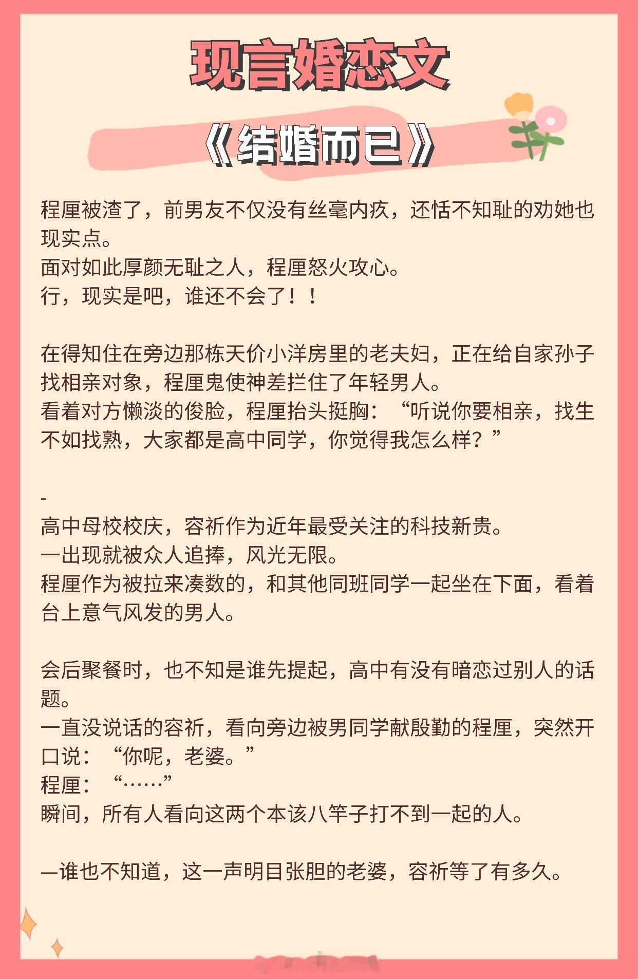 【高质量现言婚恋文】“我的目的地,是你心里。”《限定婚约》作者:苏其《结婚而已》作者:蒋牧童《你好,周先生》作者:夜蔓《教我如何不想他》作者:梦筱二《婚后动人》作者:今雾《岁晚新婚》作者:苏其推文言情小说推荐推文
