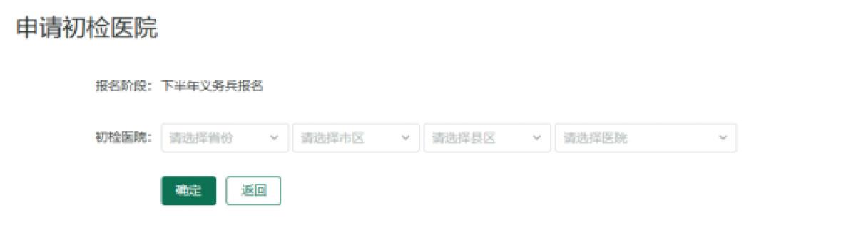 义务兵报名信息填写完毕并成功提交后,请在当地乡镇武装部或高校征兵工作站工作人员的指导下,点击我的进度里的“初检初核”按钮,选择初检医院进行初检。