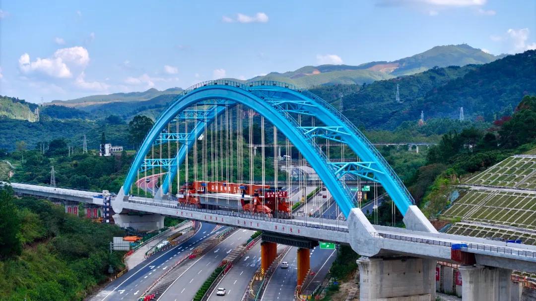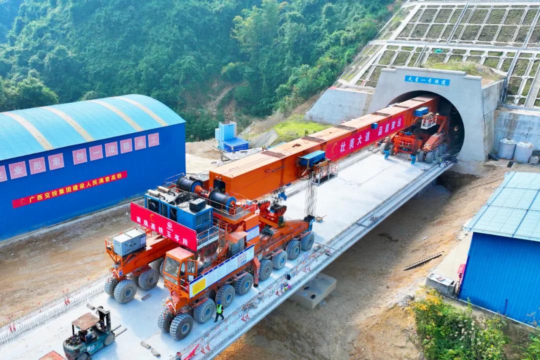 由广西交通投资集团投资建设的南珠高铁玉林北至岑溪东段全线共有桥梁65座、隧道22座,桥隧比高达84.4%。项目设有3个梁场,共承担1224孔箱梁的架设任务,穿隧过桥跨线是架梁施工的重难点。