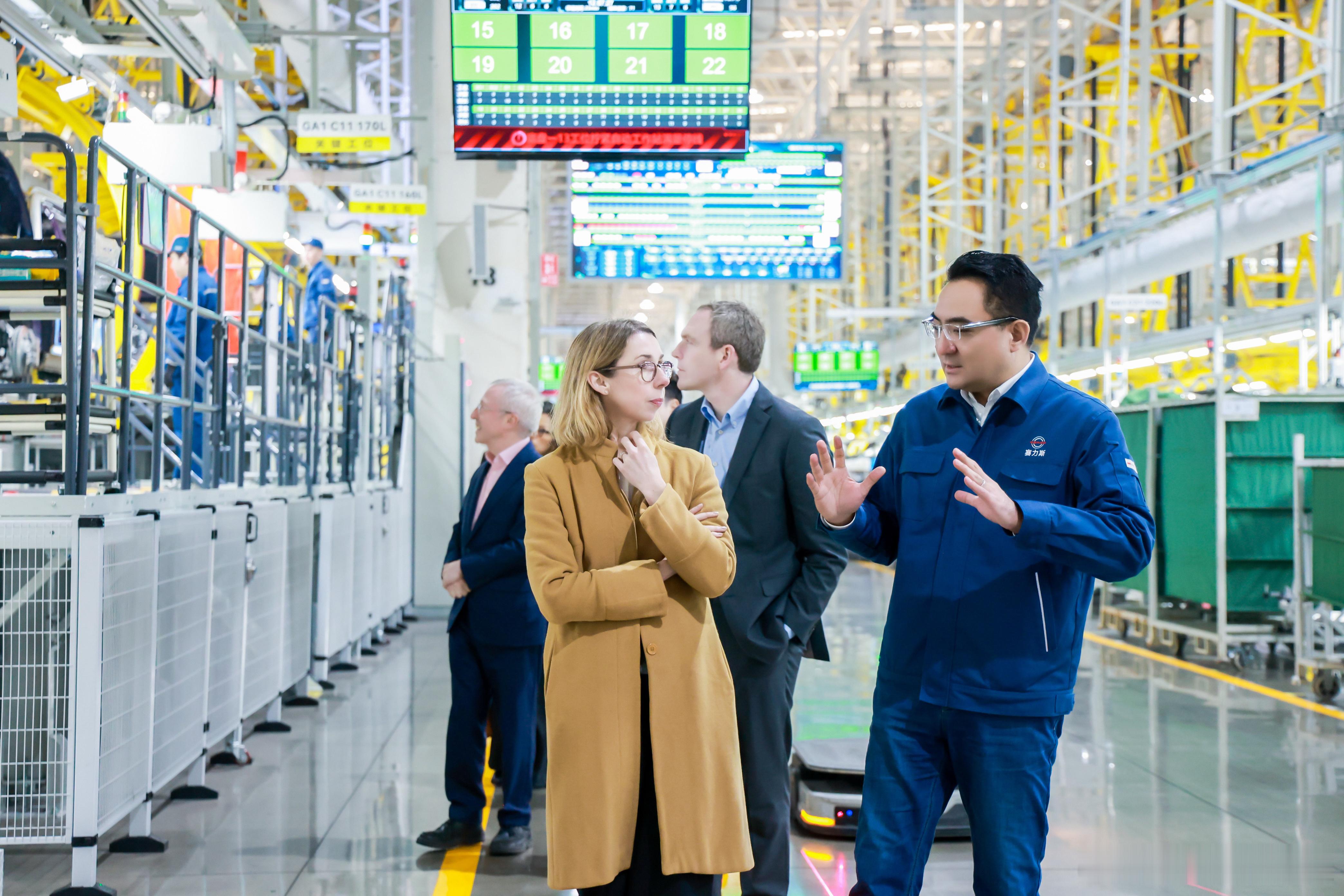 今天在赛力斯超级工厂 接待了英国外交部全球事务司司长Melinda Bohannon、前英国国际贸易部次长Martin Donnelly爵士和英国驻重庆总领事Anthony Preston一行。我给来宾们分享了赛力斯 在可持续发展和ESG方面的创新实践,同时也向他们介绍了赛力斯的最新动态和全球化布局,同时表示我们要做好全球化的关键是做好本地化。(localization for globalization)Bohannon女士在体验完问界M9 后表示,赛力斯的产品和发展速度给她留下了深刻印象,希望今后中英汽车产业可以进一步加强交流与合作,在英国可以尽快买到右舵版问界汽车。