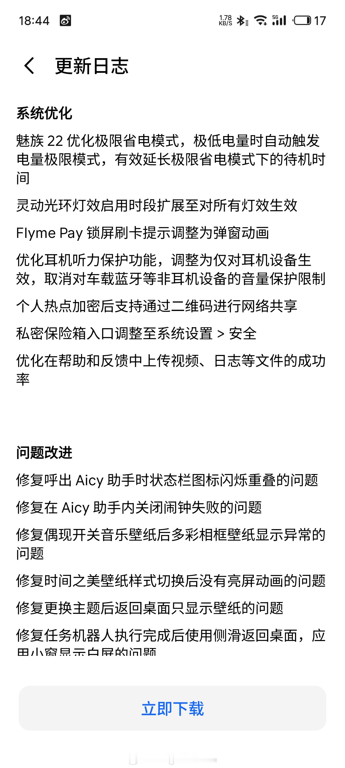 Flyme 12.5 已推送,请注意查收升级覆盖机型:魅族 22 / 魅族 21 系列 / 魅族 20 系列 / 魅族 Lucky 08这次修复的bug太多太多了。工程师辛苦了,加鸡腿。