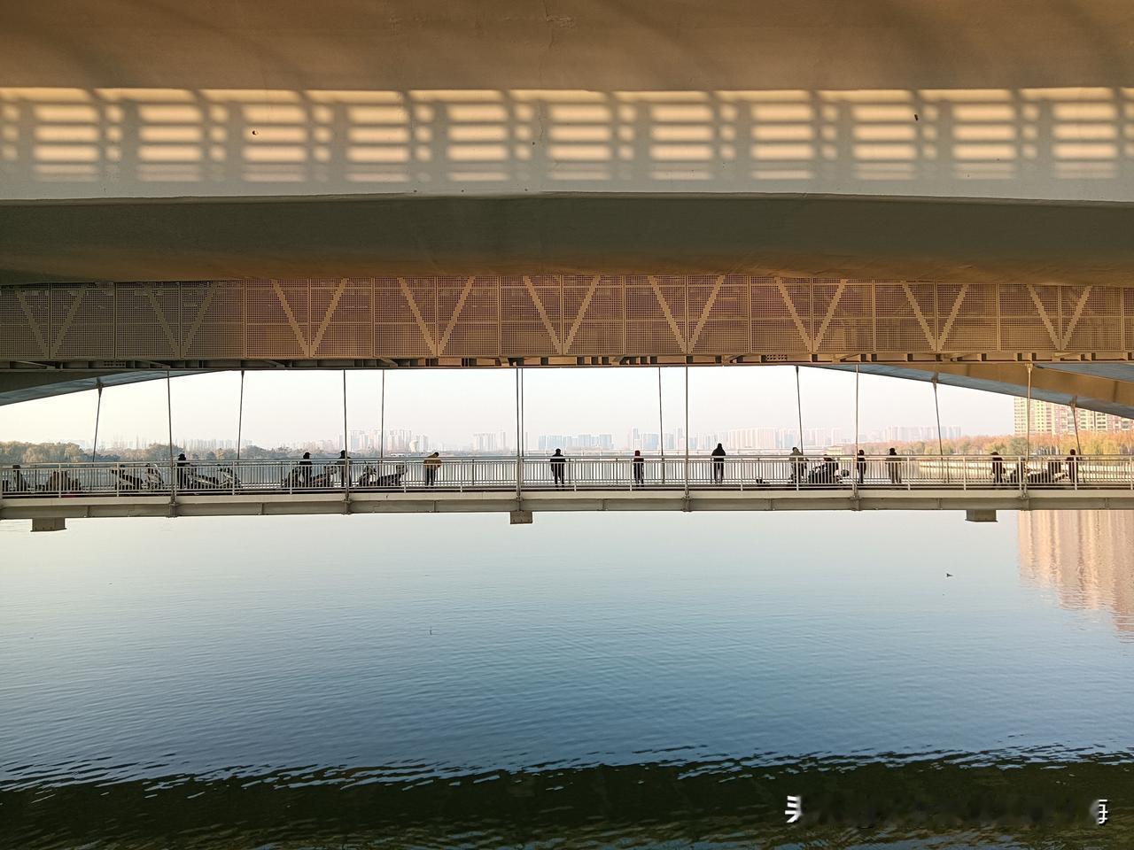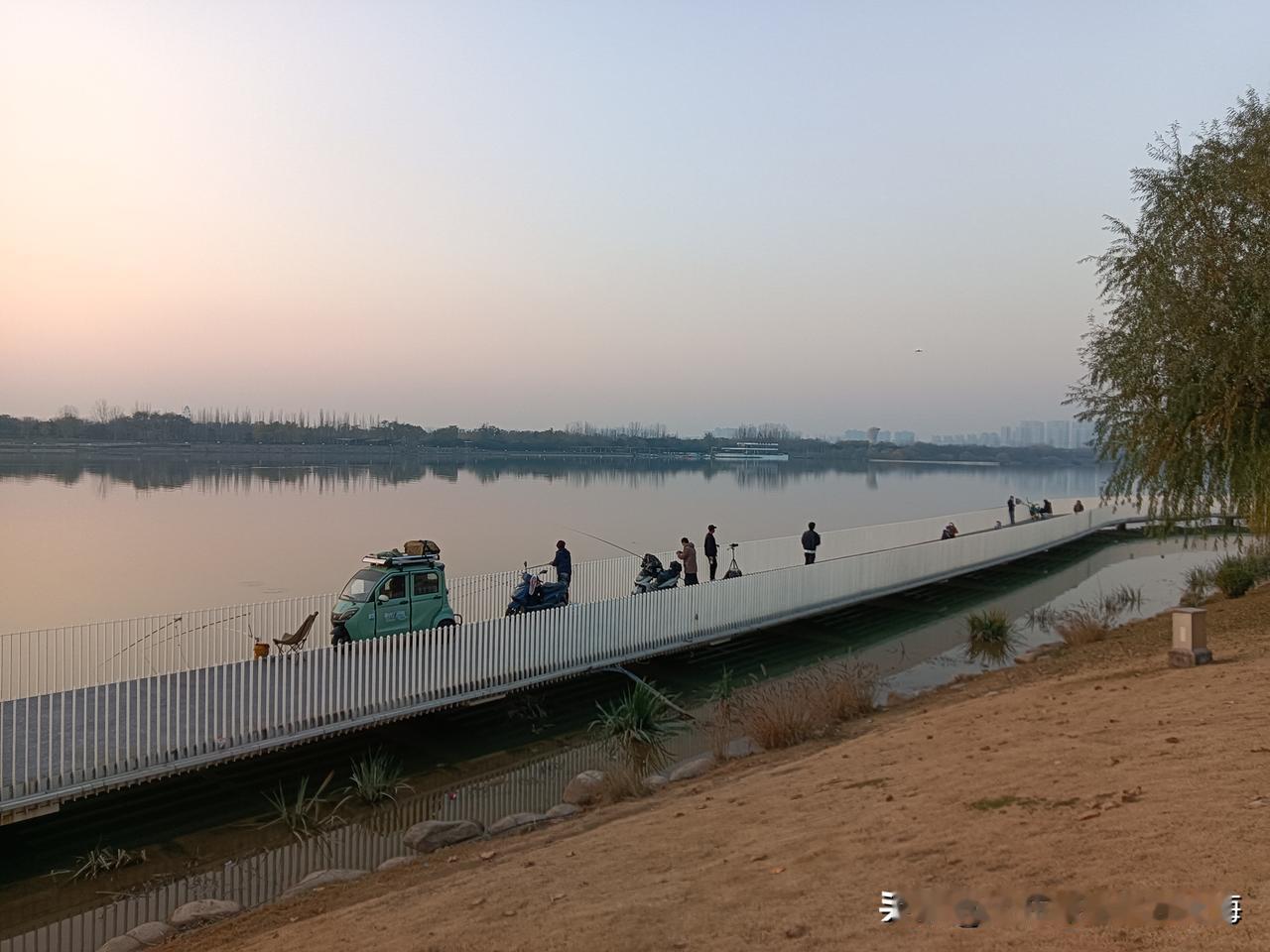 坐着地铁10号线到未央湖站,本来计划从浐灞国家湿地公园东侧外围河堤往北穿越到灞渭桥。可一到河边又改变了路径,选择了分段先走公园外围一小段至“水上运动俱乐部”,然后回头再跨过灞河桥到东岸看钓鱼!冬天的灞河上有轻薄的雾霾,远景看的影影绰绰,但头顶上飞过的雁和鸟令我是目不暇接!公轨跨河“港盛大桥”设计的尽乎“完美无缺”,桥梁专家真是“神机妙算”,把桥的“多功能”空间利用的恰到好处,既通汽车又过地铁还预留了行人通道,也就是这个通道不仅是小摊小贩们的“自由市场”也成了钓鱼人的“安乐窝”!西安浐灞风光 美景浐灞 浐灞生态公园