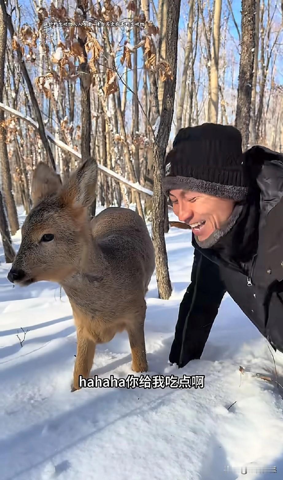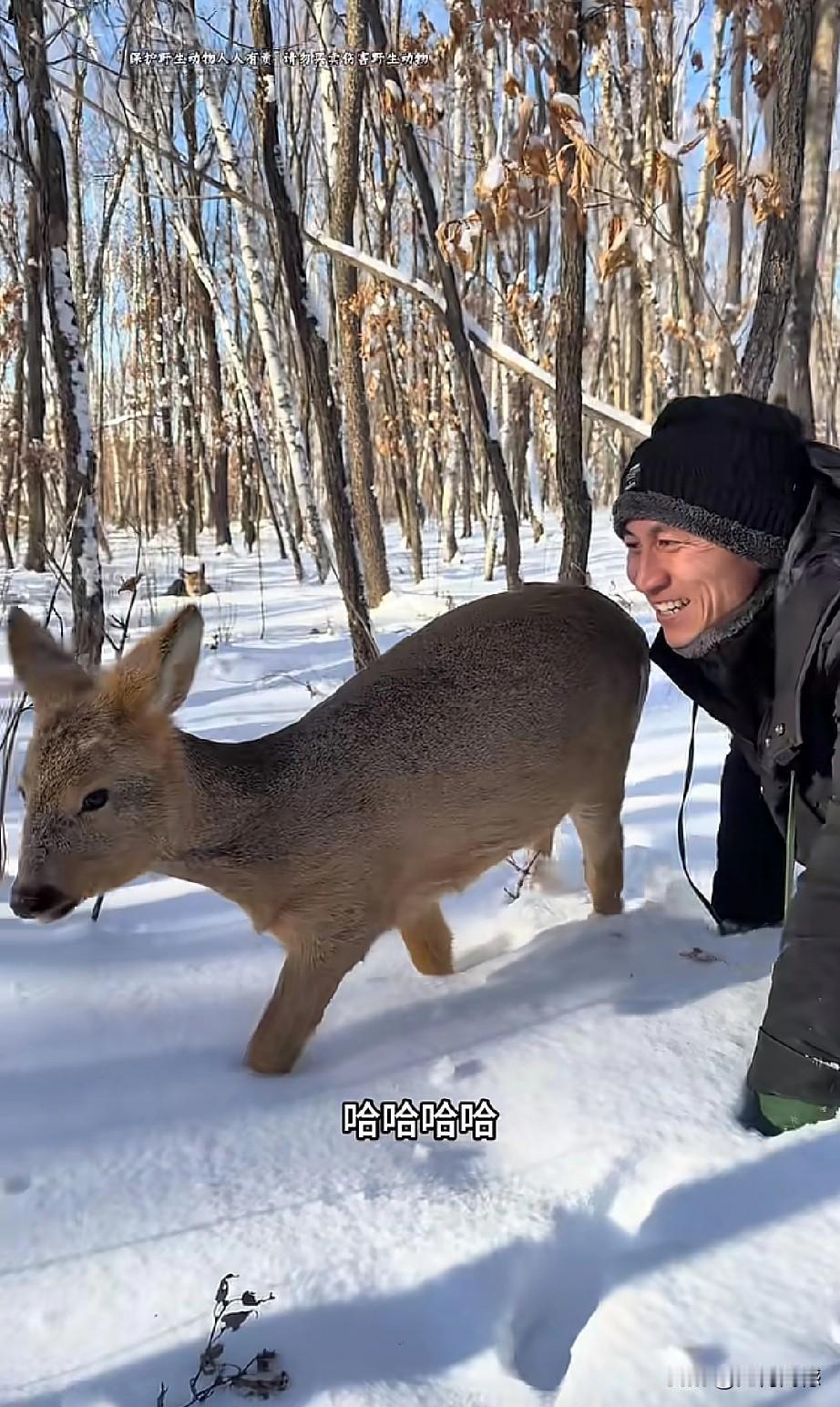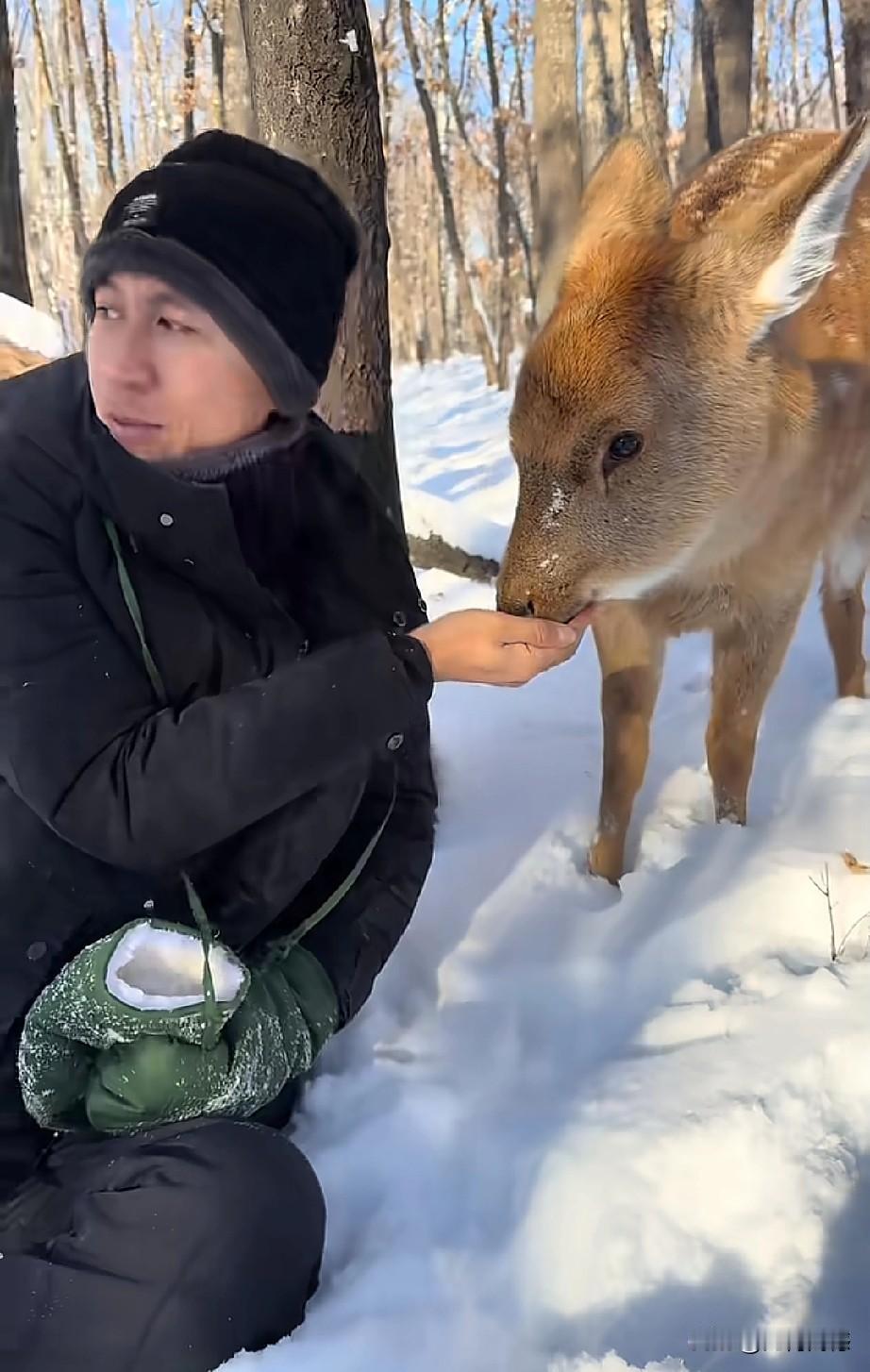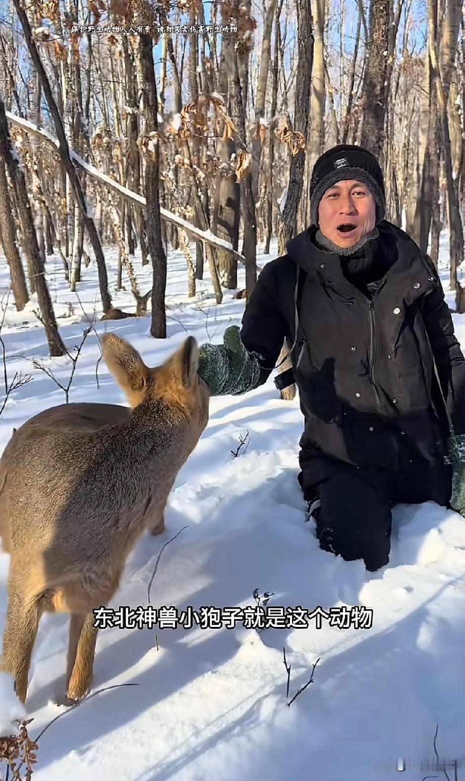 东北的这个哥们,对野生小动物非常的友善,与野生动物真正达到了和谐共处的效果,这只