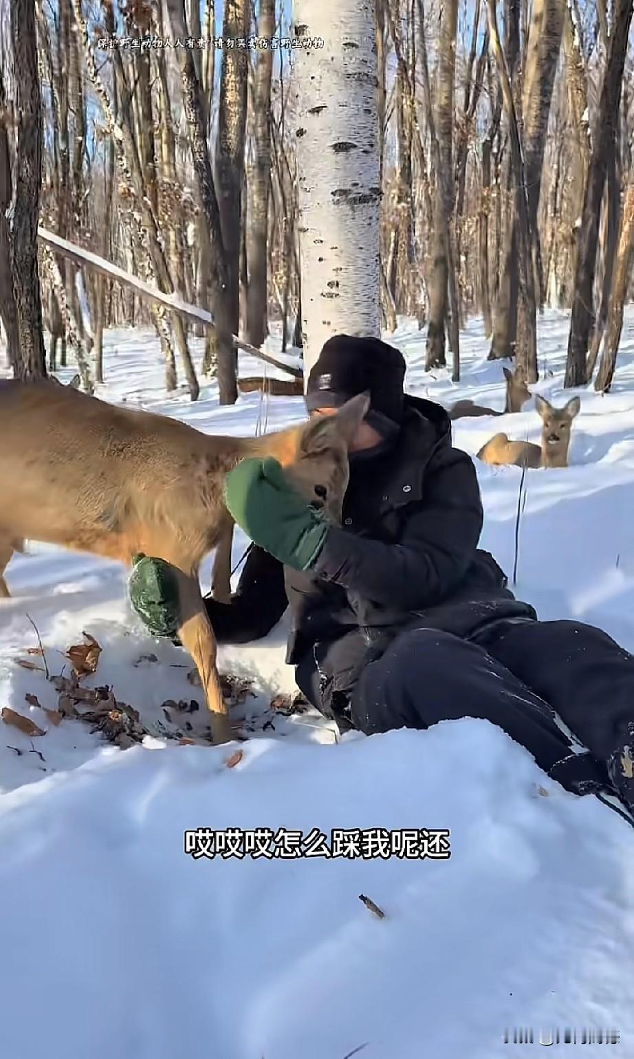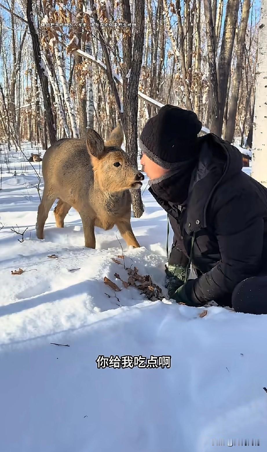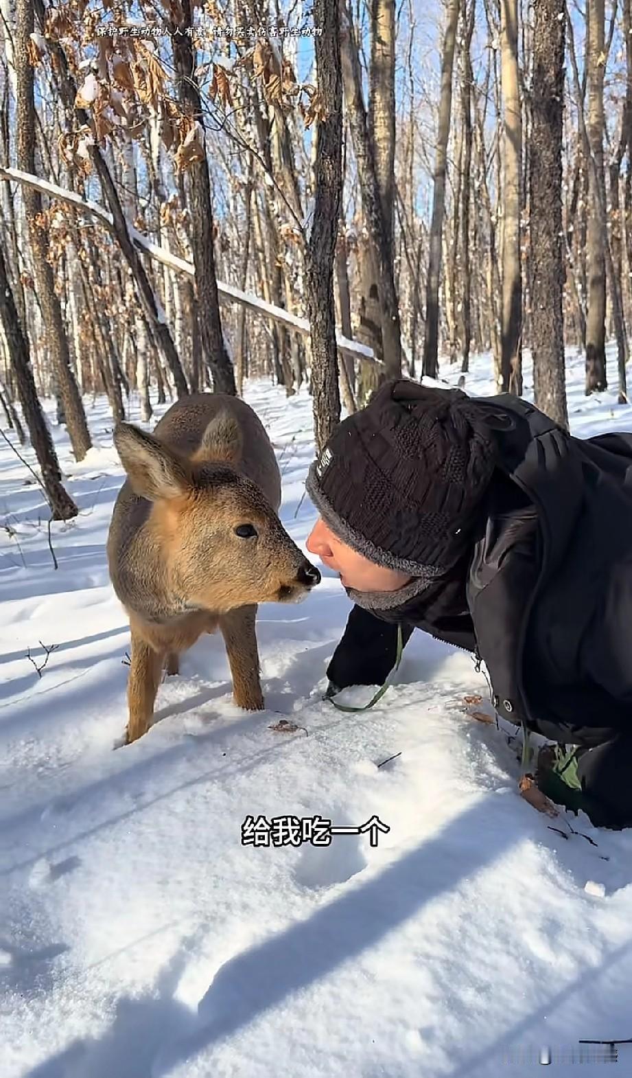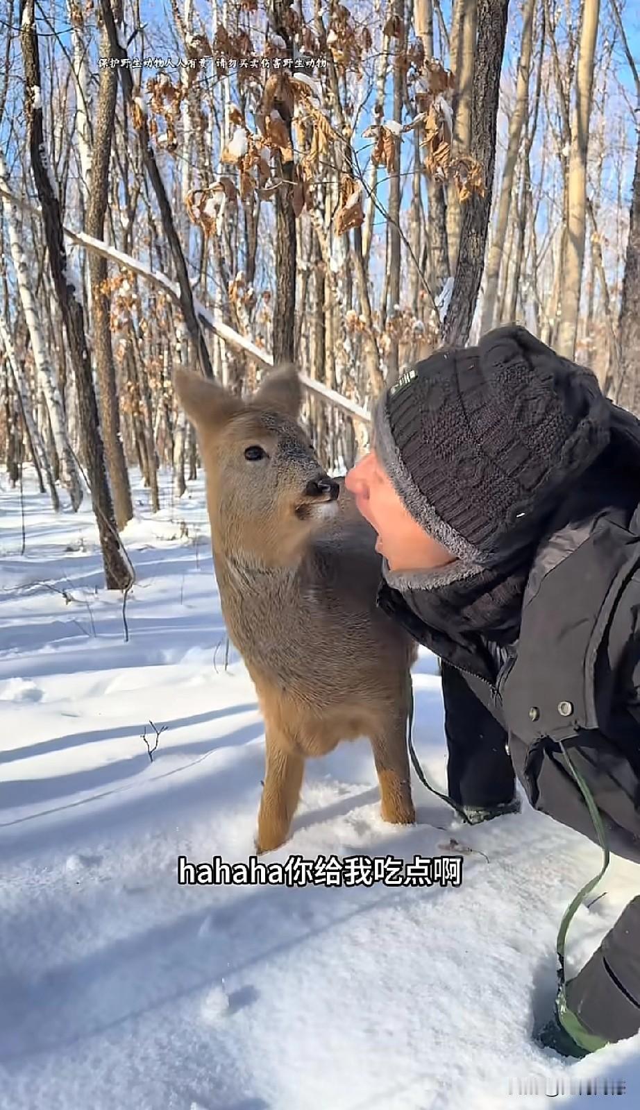 东北的这个哥们,对野生小动物非常的友善,与野生动物真正达到了和谐共处的效果,这只