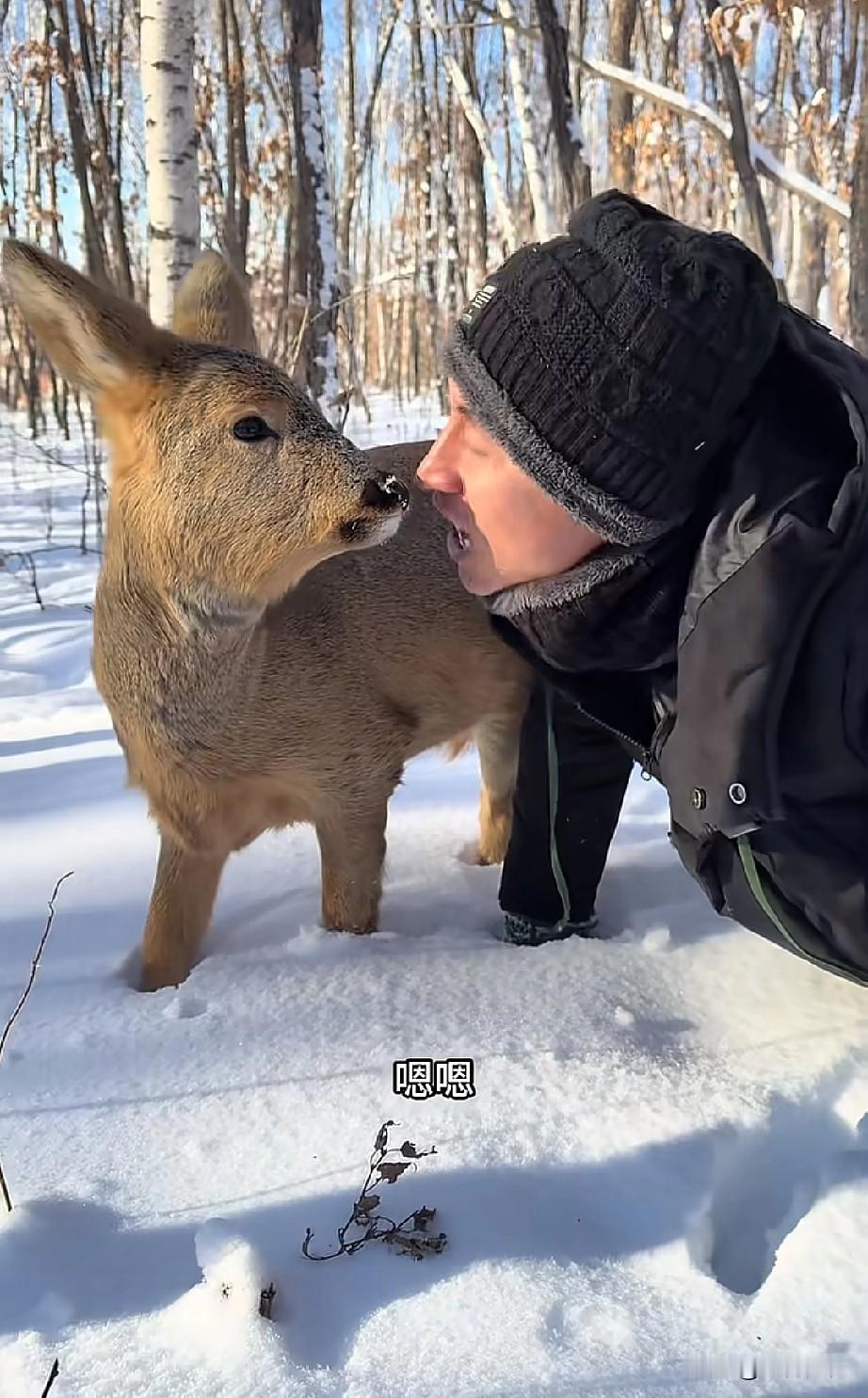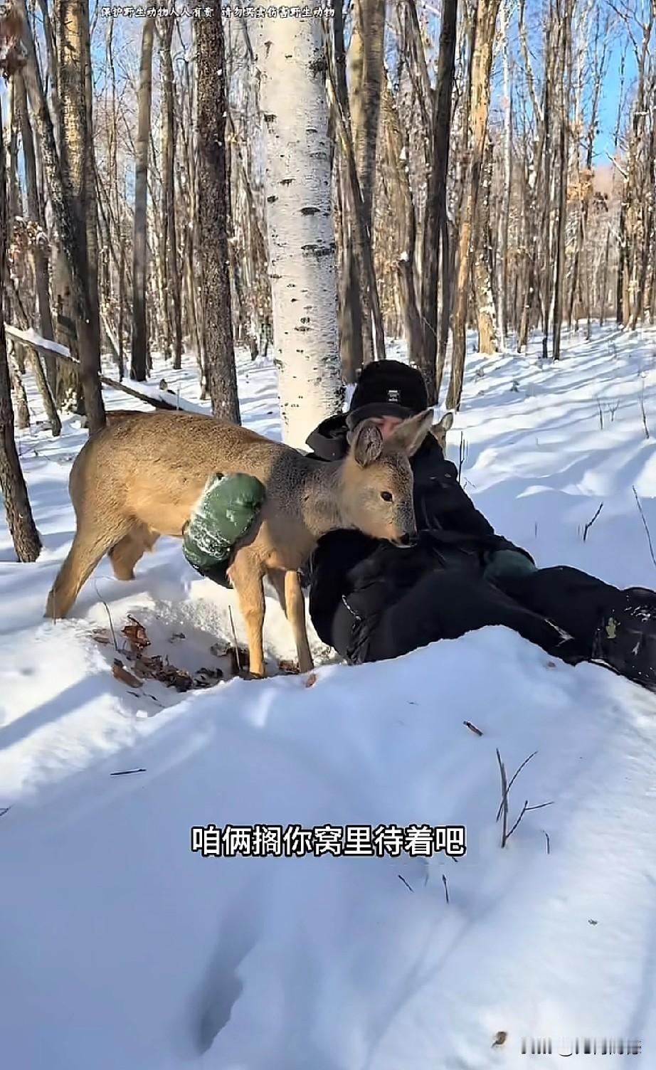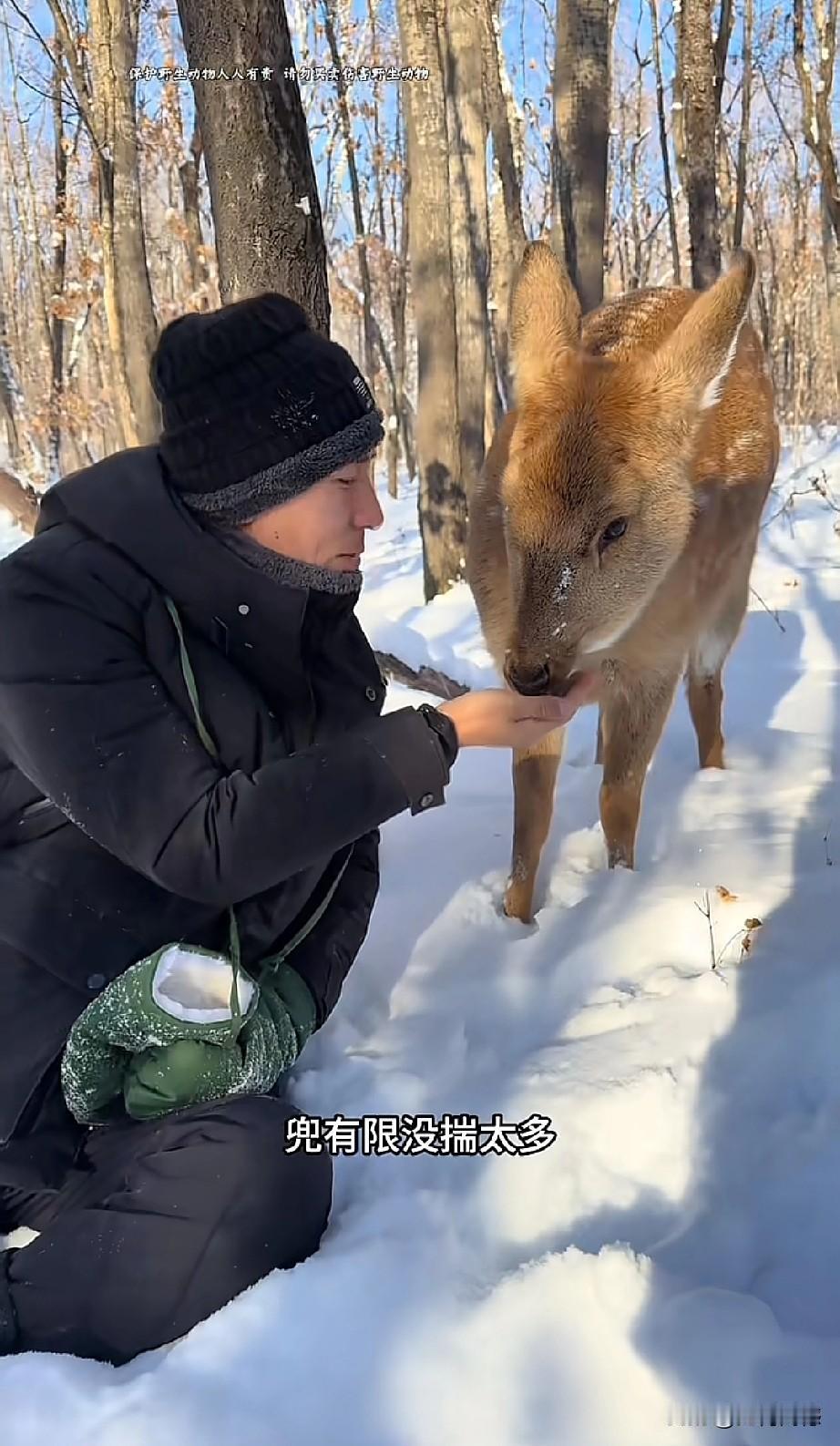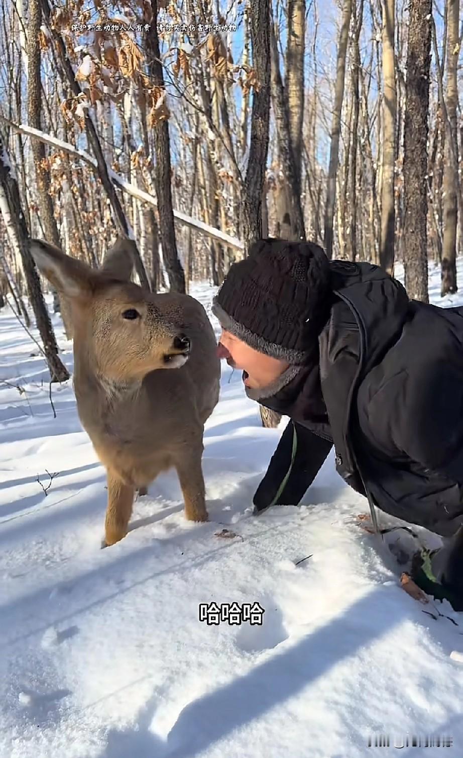 东北的这个哥们,对野生小动物非常的友善,与野生动物真正达到了和谐共处的效果,这只
