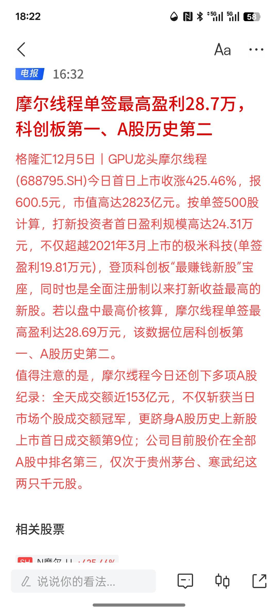 今天大哥一上市直接大涨,其他的杂毛跟风盘全部大跌!估计又套了一大票! 所以谁才是真正的主角,谁才是真正的大哥,这不就一目了然了,蹭热点,最后还不跌成灰! 不过这一次确实让那些中签的人妥妥的赚了一大笔!尤其是机构直接抢筹码申购,真的是大赚特赚!还有一些散户直接申购过后,直接放弃了!到嘴的肉吐出去给别人吃了!让那些机构捡了大便宜!是不是那些散户投资者开始把肠子都悔青了! 不过今天来看这个盘面,第一天开盘确实换手率太高了,高的有点吓人!不知道是散户跑的还是机构跑的!