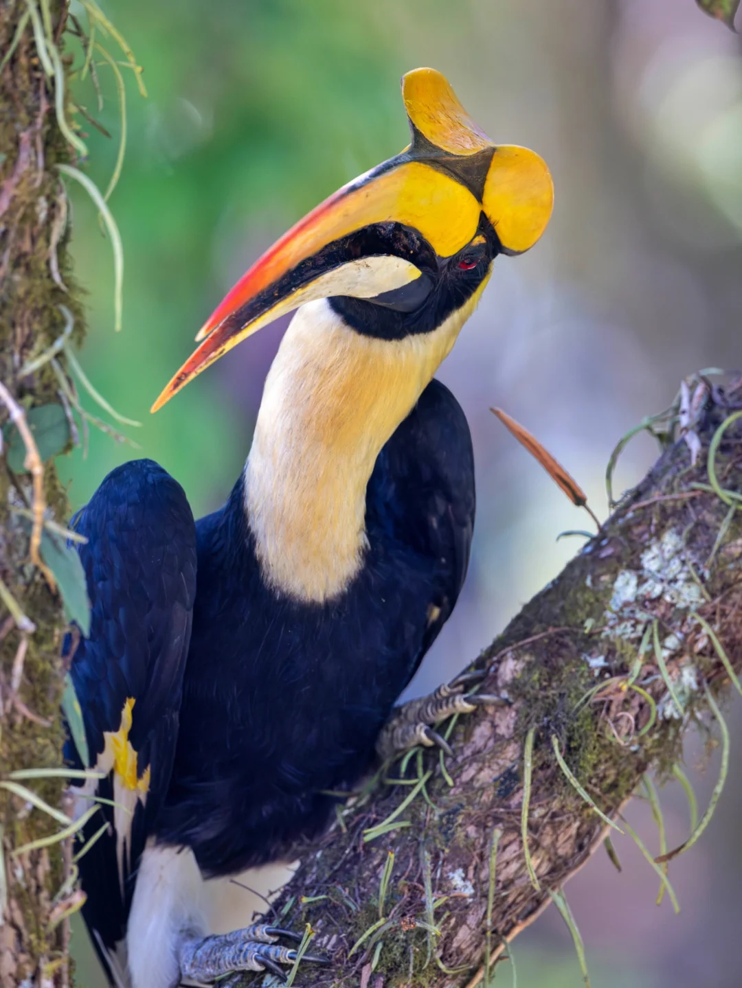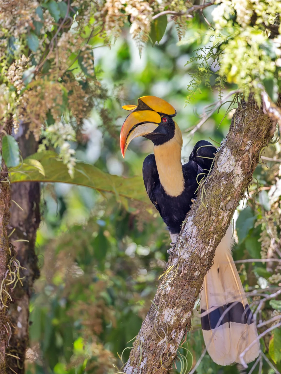 原创拍摄 双角犀鸟,Great Hornbill,犀鸟目犀鸟科犀鸟属。国家一级保护动物。犀鸟科里的大家伙,分布在南亚到东南亚。我国是边缘分布,在云南盈江县有繁殖。 这只超大的双角犀鸟是今年3月在泰国岗卡章看到的,一开始站在满是花的树干上,特别梦幻,然后向我飞来,离我最近不到1米,震惊!实在是太大了,太壮观了!
