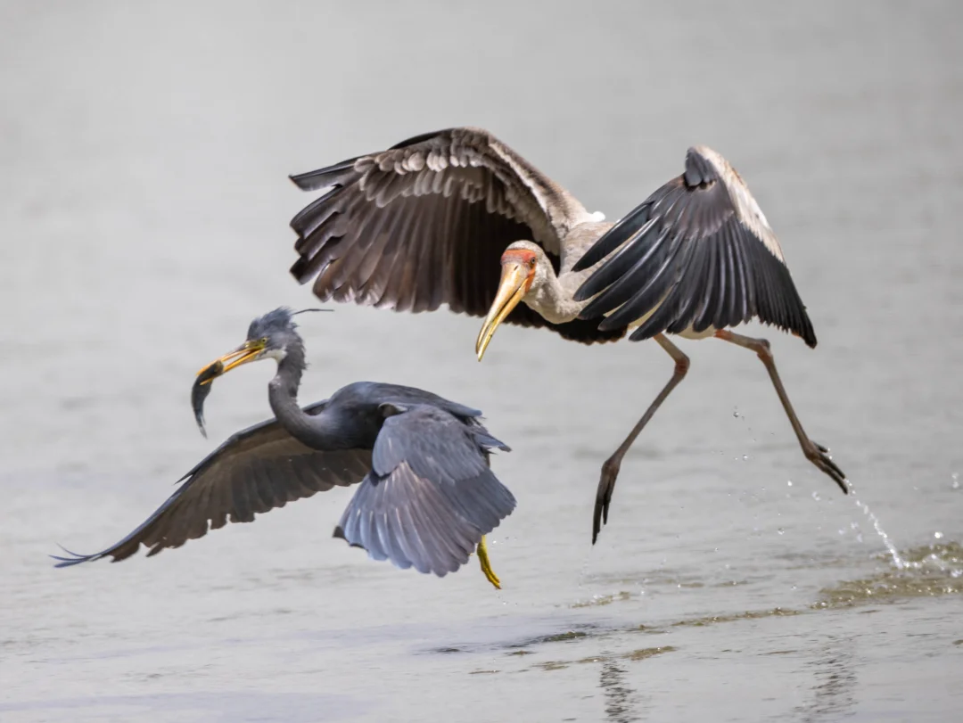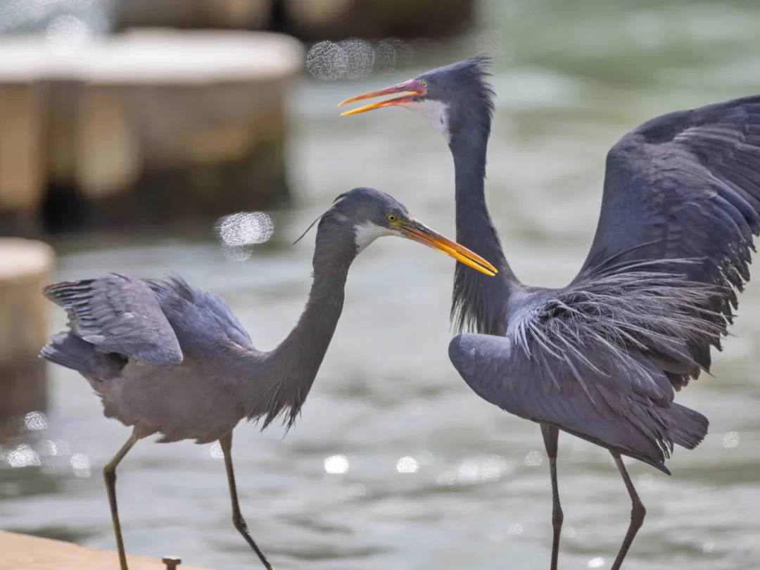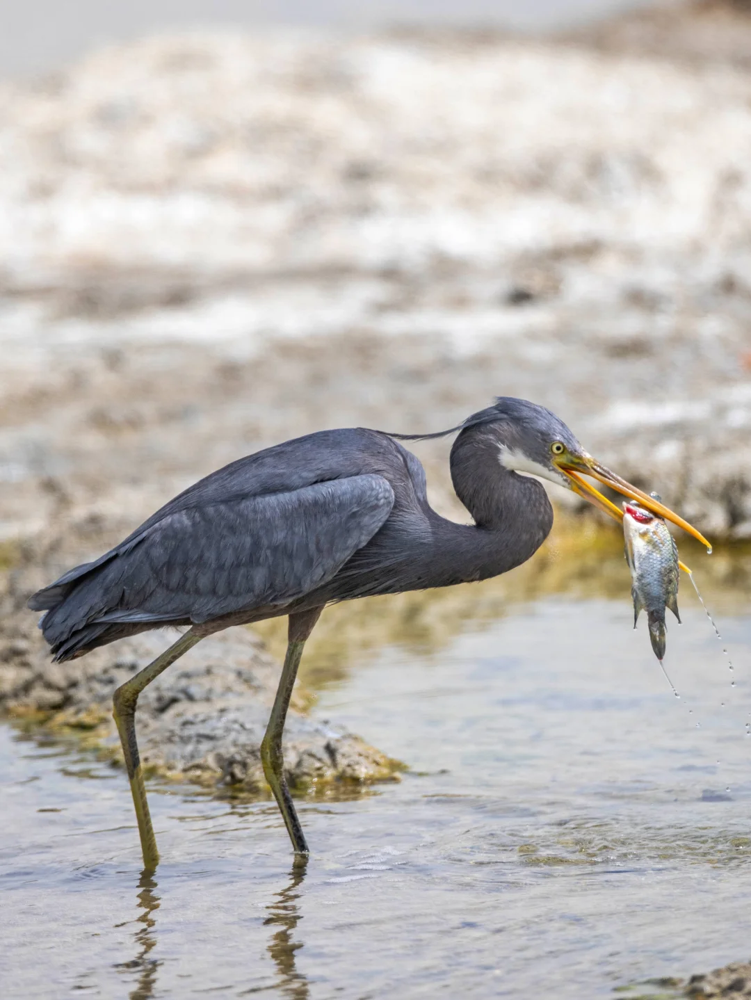 原创拍摄于2025.05 西岩鹭,Western Reef Heron,鹈形目鹭科白鹭属。主要分布在从西非洲到阿拉伯半岛再到南亚的海岸线上,在我国超级罕见。 西岩鹭和岩鹭一样有两种色型,这次看到的是深色型,比岩鹭腿更长,喙更细,喉部更多白色,这样看来也就比岩鹭颜值高一丢丢吧。 这次在迪拜的红树林湿地看到两只西岩鹭,已经进入繁殖羽,并且还见到捕鱼,吃鱼,被抢的场面,真是精彩。