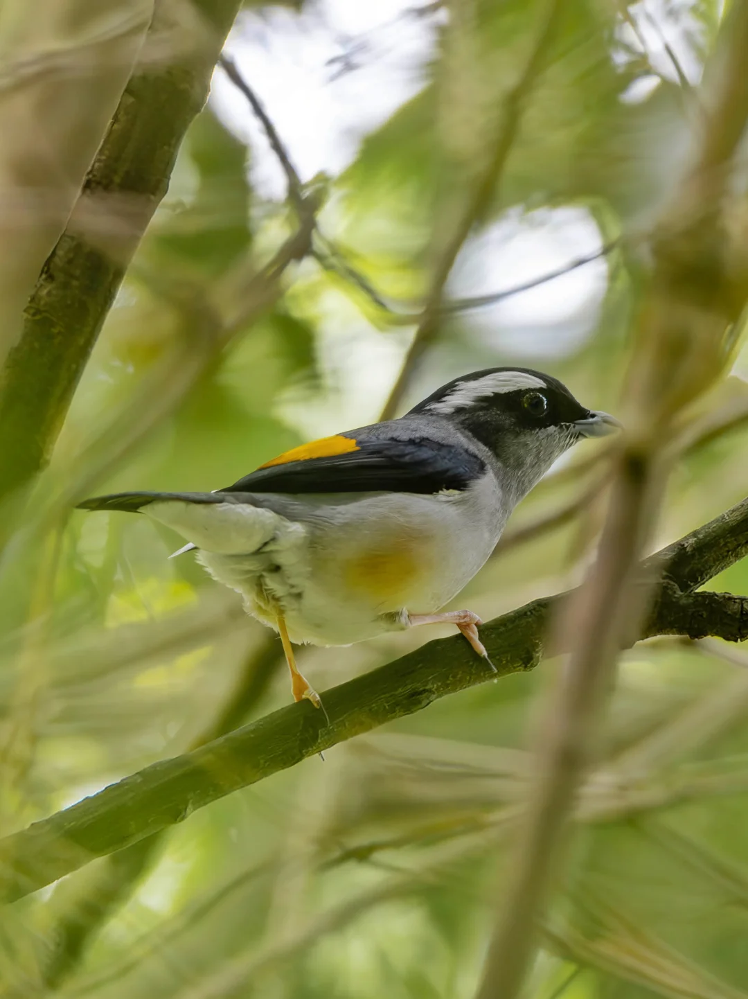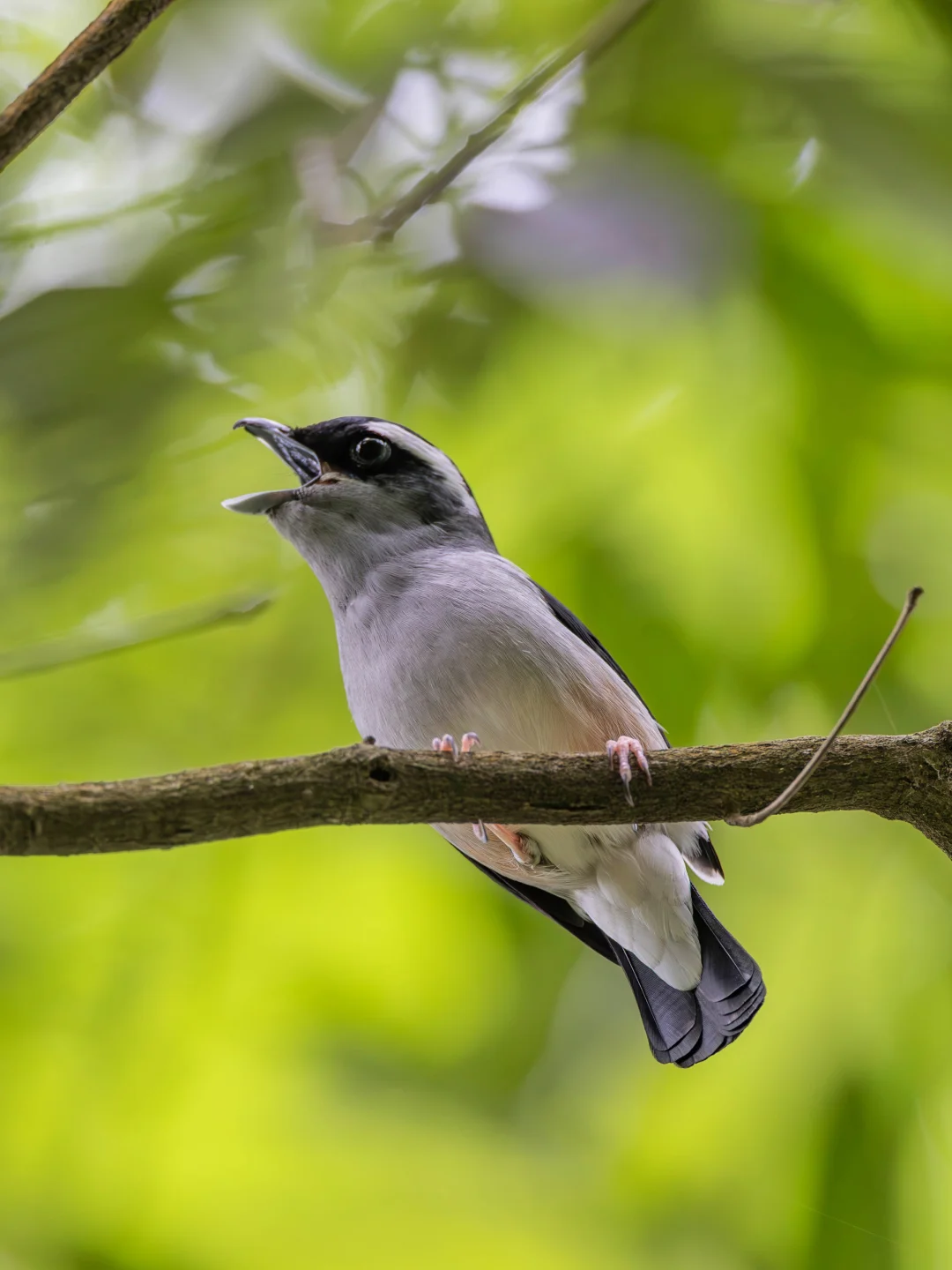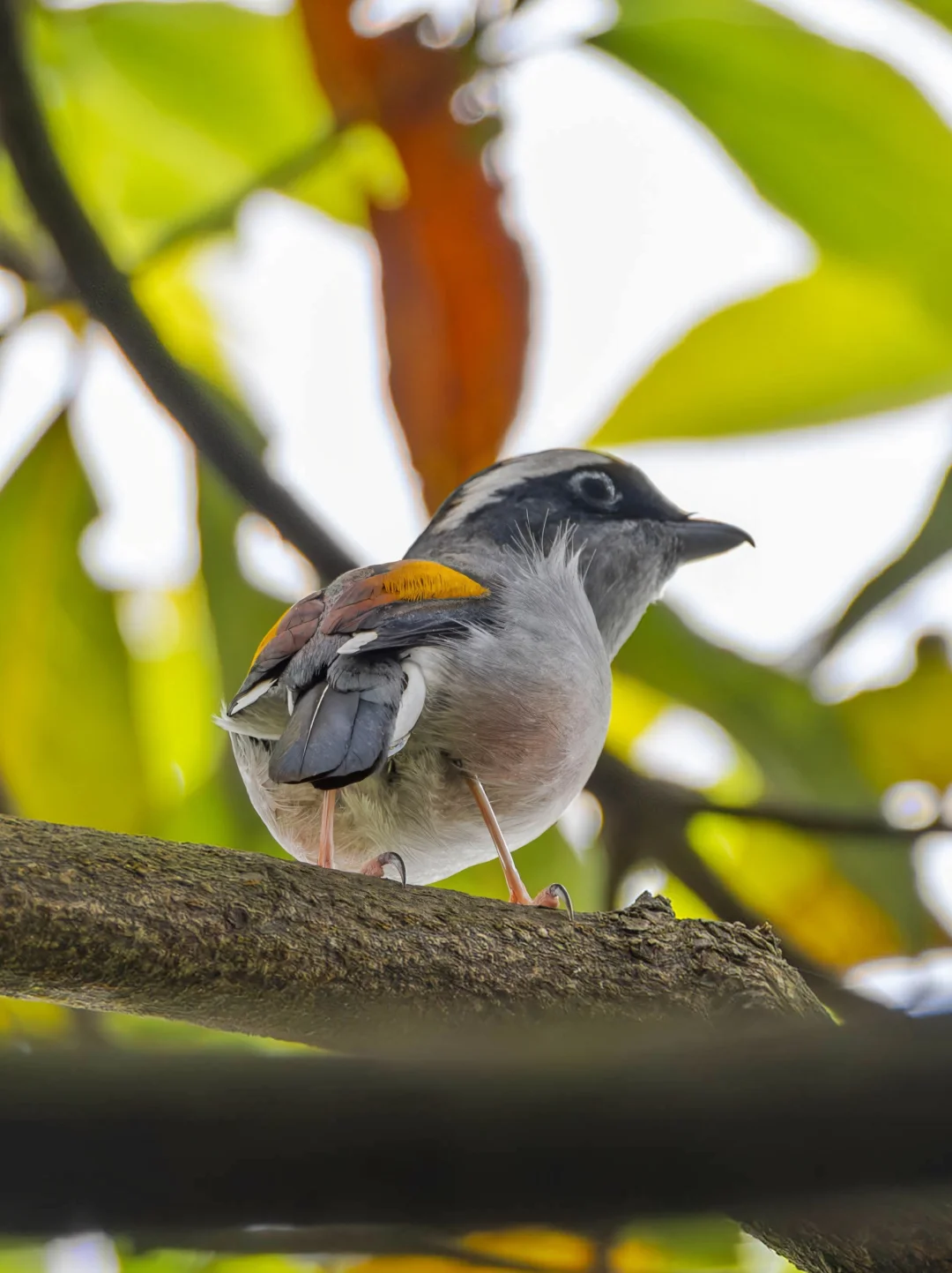 原创拍摄于2025.05 红翅鵙(jú)鹛,White-browed Shrike-babbler,雀形目莺雀科鵙鹛属。分布于喜马拉雅山脉东部延伸到东南亚地区的可爱小鸟。 红翅鵙鹛雄鸟具有醒目的白眉,翅膀有鲜艳的橙色,腹部干净白色,整个小鸟显得很强壮。雌鸟色彩较淡。 这天我只是陪我爸妈在雅安爬山,忽然听到响亮的红翅鵙鹛叫声,原来有一只小可爱就在我们头顶的树林里。于是马上掏出包里的相机,拍了两张仰头版哈哈哈,意外收获。爬山也要随身带长焦啊。