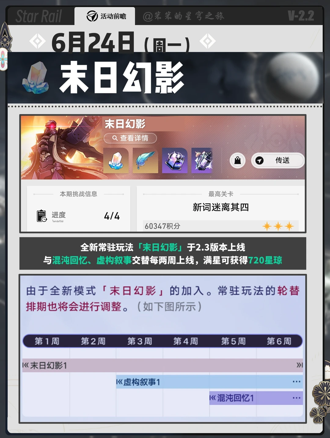 🐱大家好,我是笨笨的铲屎官 本周五将迎来前瞻直播 官方已经确认的是流萤、翡翠将迎来up 啊,流萤,你让我实在是等的太久了 其次2.3将上线新深渊「末日幻影」 这些都是官方已经公布的 然后匹诺康尼的剧情,并没有迎来完全的终结 期待前瞻透露消息 然后你还有什么期待的吗