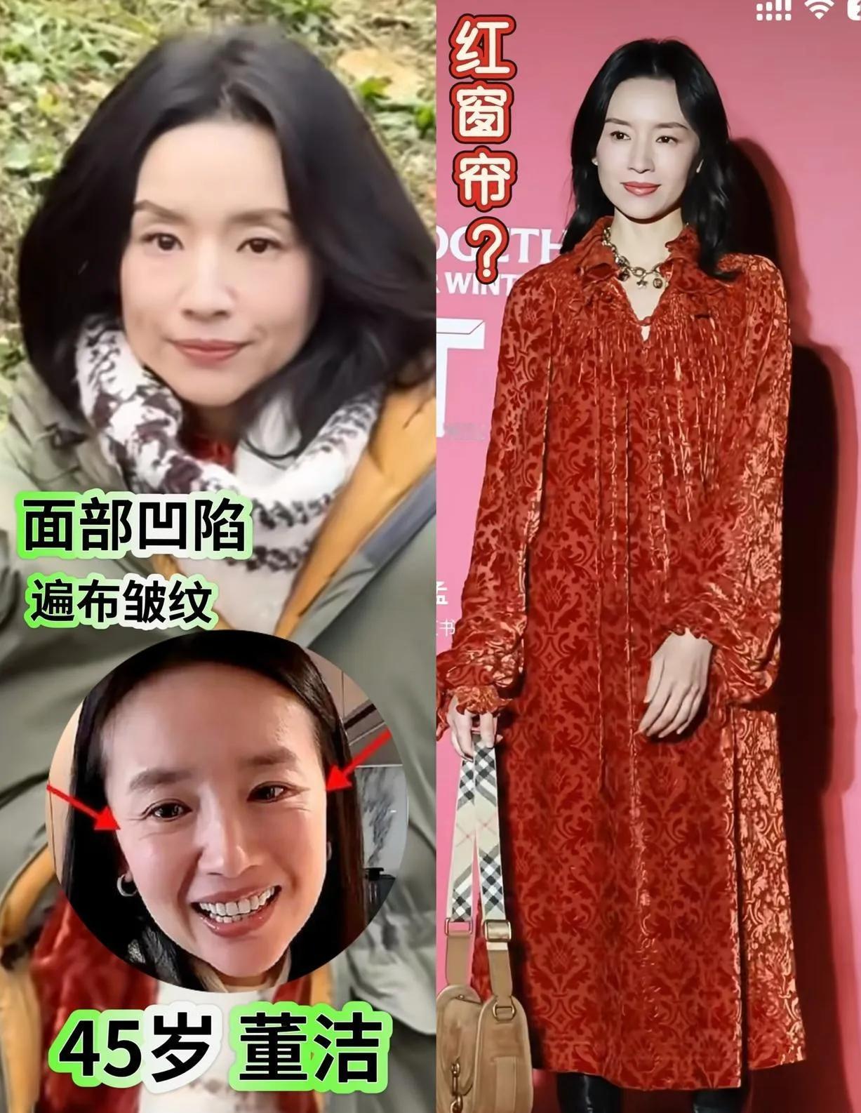 董洁的45岁:是垮了还是活透了? 刷到董洁近况,有人说她面部凹陷显老、红裙像窗帘布,吐槽“单亲妈妈熬没了精气神”。 但她早不是冷清秋了:素颜接娃有细纹,直播讲面料却比20岁从容;穿优衣库砍价,也能卖爆万元大衣;豪宅里裹厚外套怕干燥伤儿子喉咙,自己吃剩虾却给娃做满桌菜。 那些“显老”的痕迹,是熬夜直播、单手扛菜的利落;被嘲的红裙,私下配的是儿子送的酸奶。 岁月没饶过谁,可她敷面膜时接儿子递来的巧克力棒,笑得比演少女时更松弛。