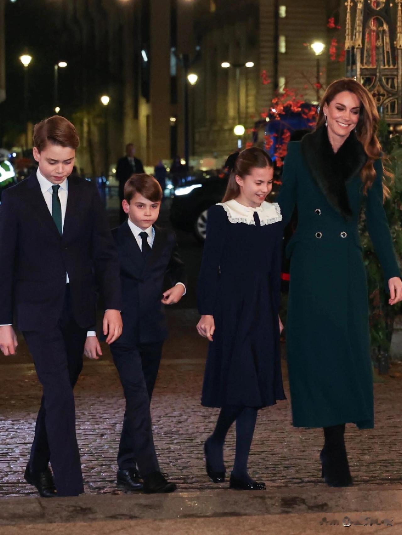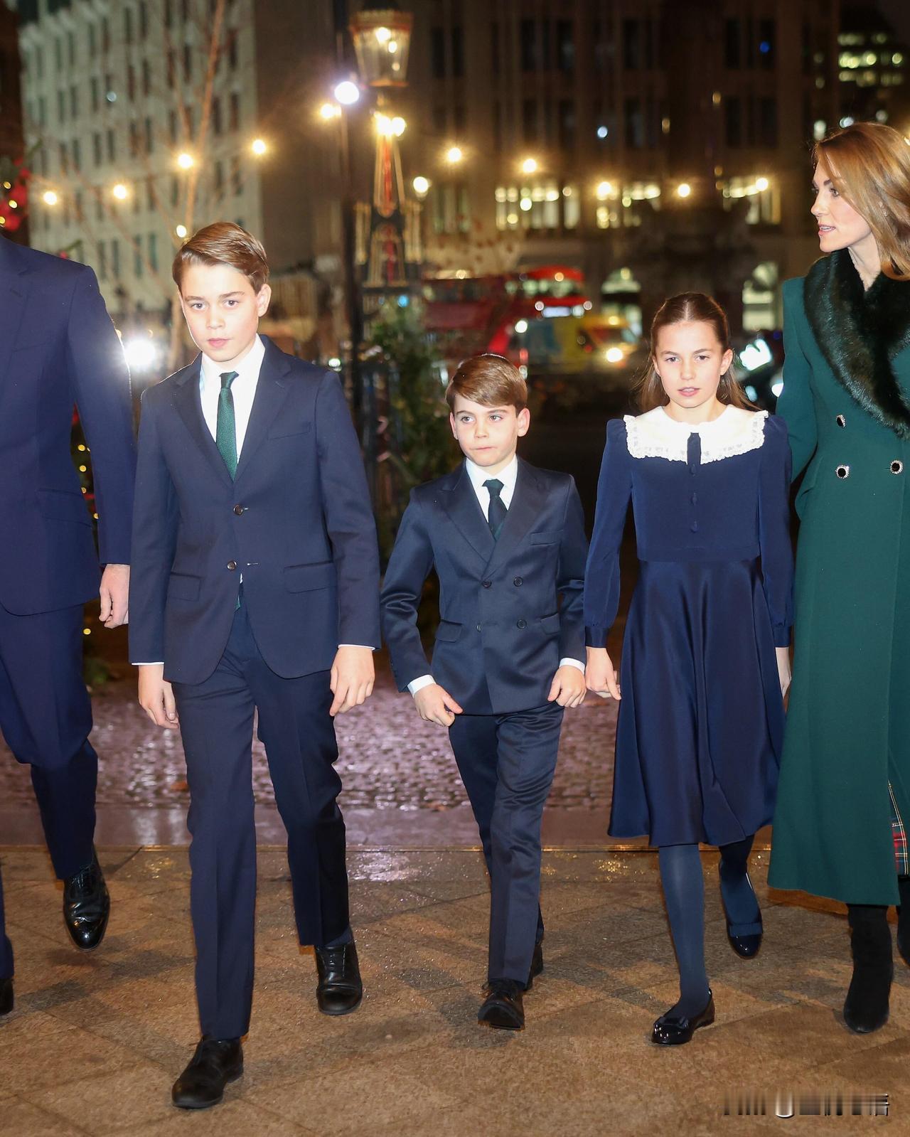 威尔士三宝圣诞音乐会又杀疯了😭 每年最期待的王室圣诞名场面来了! 威尔士三宝长得好快, 曾经圆滚滚的胖乔也太会长了, 居然飙到威廉王子肩头(毕竟威廉191cm啊), 小夏也悄悄长到凯特王妃肩头, 连妈妈穿高跟都快hold不住了! 今年穿搭更是默契满分, 乔治领带和凯特大衣配色绝配, 三宝和爸爸全是海军蓝穿搭, 一家人走在一起氛围感直接拉满~ 看着曾经的小萌宝慢慢长成小大人, 真的又欣慰又感慨, 这大概就是圣诞最治愈的画面吧! 原来看着别人长大,也是一种幸福呀❤️