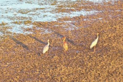 荆州新闻网消息(记者孙晓旭通讯员熊铭)近日,石首麋鹿国家级自然保护区管理处工作人员通过专业监测设备,首次清晰捕捉到国家一级保护动物白鹤的活动影像。画面中,3只白鹤体态优雅、活动自然,在湿地沼泽间悠然漫步。