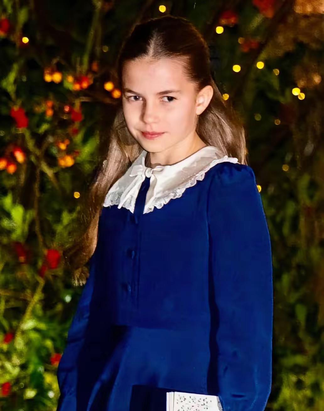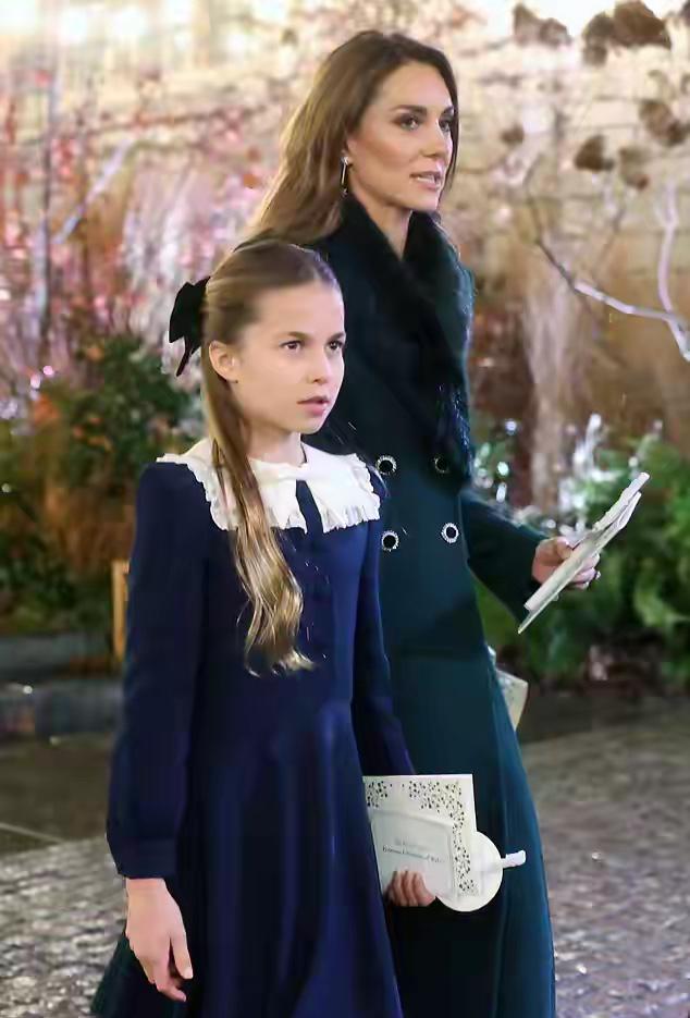 夏洛特公主亮相圣诞颂歌,凯特看她满脸骄傲漂亮的夏洛特公主出来了,身穿彼得潘方