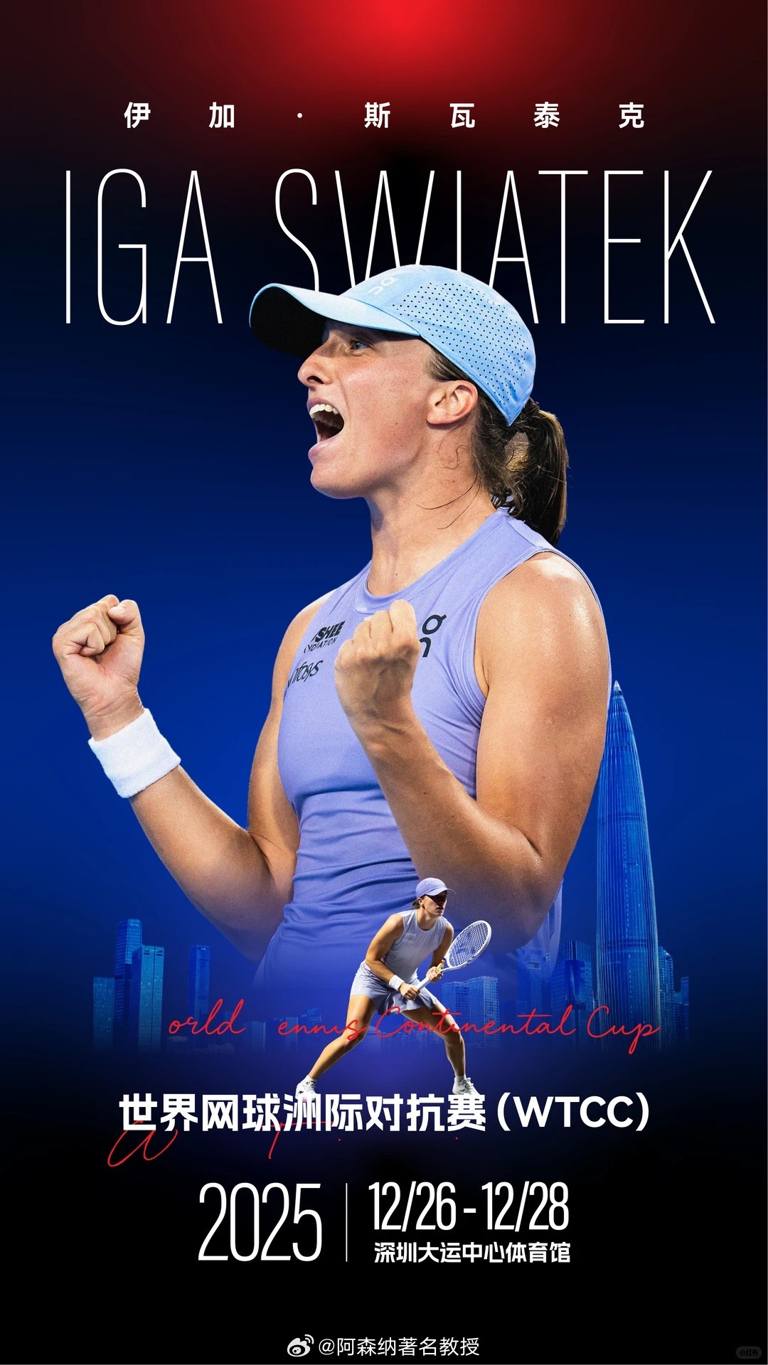 世界网球洲际对抗赛(WTCC) 12/26-12/28深圳大运中心体育馆,斯瓦泰克,王欣瑜,莱巴金娜,卢布列夫将参加比赛 阿森纳著名教授