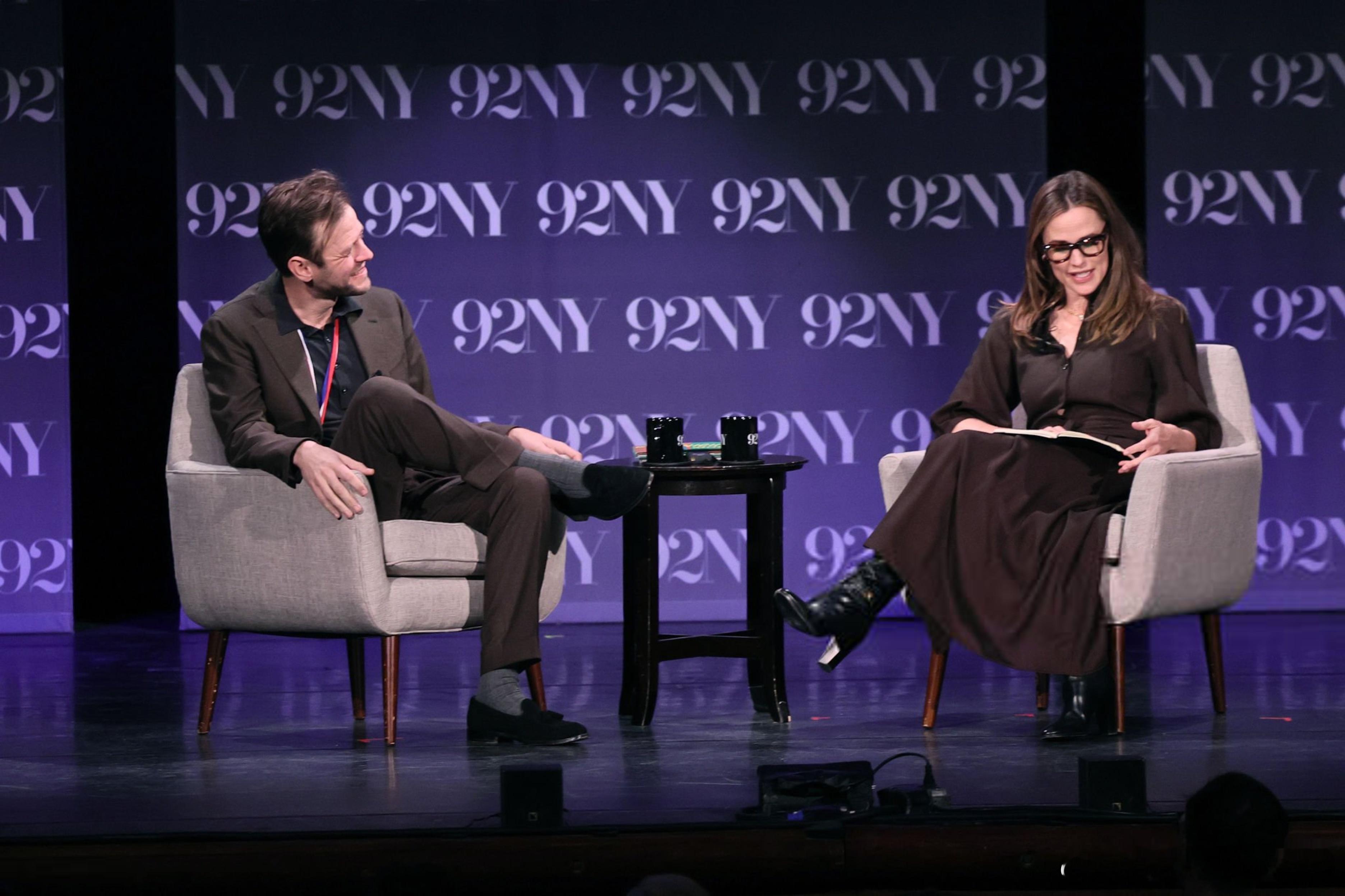 Jennifer garner詹妮弗加纳在纽约出席Consider The Picture Book活动,和儿童文学作家Mac Barnett一起进行宣传对话