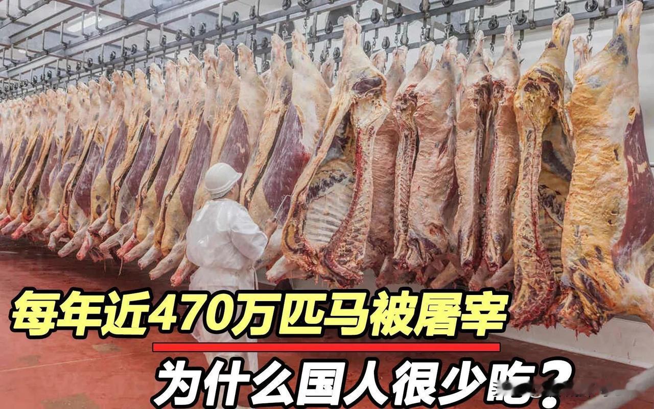 中国每年有470万匹马被屠宰,可是在国内几乎看不到有人吃马肉,这些马肉都去哪了?原来,它们都悄无声息地流向海外,构建起一个年产值数十亿元、却鲜少人知的“隐形帝国”。 国内少见马肉上桌,倒不是说这肉有啥问题,主要是老辈传下来的习惯里,马跟牛不一样——牛早年也耕地,但后来慢慢成了肉用畜种,马呢,更多是拉车、赶路的“帮手”,不少人打心里就没把它当成食材。 再加上这些年猪肉、牛肉、羊肉供应充足,超市货架上从来不缺,大家也就没想着去尝试马肉,久而久之,国内马肉消费市场就没发展起来。 但海外不一样,不少国家吃马肉是老传统了。像欧洲的法国、意大利,马肉能做成排、灌成香肠,甚至是冷盘,在当地超市里就能买到; 中亚的哈萨克斯坦、吉尔吉斯斯坦这些国家,游牧文化里马肉本身就是日常饮食的一部分,煮马肉、马肉饺子都是常见菜。这些地方对马肉的需求稳定,而且愿意为合格的马肉买单,这就给中国马肉出口留了空间。 这个“隐形帝国”其实早有链条。国内适合养马的地方,像内蒙古、新疆、甘肃,不少农户会专门养殖肉用马,这些马跟传统的役用马不一样,体型更壮,出肉率也高。 等马长到合适的年纪,会送到有出口资质的屠宰场,经过检疫、屠宰、分割,再按照海外客户的要求包装,有的冻成肉块,有的做成半成品,最后通过冷链运到国外。整个流程里,检疫是关键——毕竟出口到别的国家,人家对食品安全要求严,少一道手续都可能被退运。 这产业确实能给不少人带来收入。 养马的农户不用愁销路,屠宰场、冷链物流、外贸公司也能跟着赚差价,尤其是一些偏远地区,马养殖不算需要太高技术的活儿,能帮当地人多一份生计。年产值几十亿看着不少,但分摊到整个链条上,其实是个小众产业,跟猪肉、牛肉的规模没法比,也难怪国内没多少人知道。 不过这行也不是没隐忧。有些小作坊可能想钻空子,马的来源查得不细,屠宰流程也不按规范来,要是流到海外出了食品安全问题,不光砸了中国马肉的招牌,还会影响整个出口链条上的农户。 另外,动物福利也是个绕不开的话题,现在不少国家对屠宰过程中的动物待遇有要求,要是处理不当,也会影响出口。还有就是国内公众的认知差——毕竟每年屠宰这么多马,却很少有人知道去向,难免会有人猜测是不是有什么“暗箱操作”,其实更多是信息没公开,导致了误解。 说到底,这个马肉出口产业,是跟着海外市场需求走的,也确实带动了一部分地方经济。但要想长久做下去,规范是前提,不管是马的来源、屠宰加工,还是信息透明度,都得跟上。毕竟做出口生意,拼的不只是价格,更是信誉。 各位读者你们怎么看?欢迎在评论区讨论。