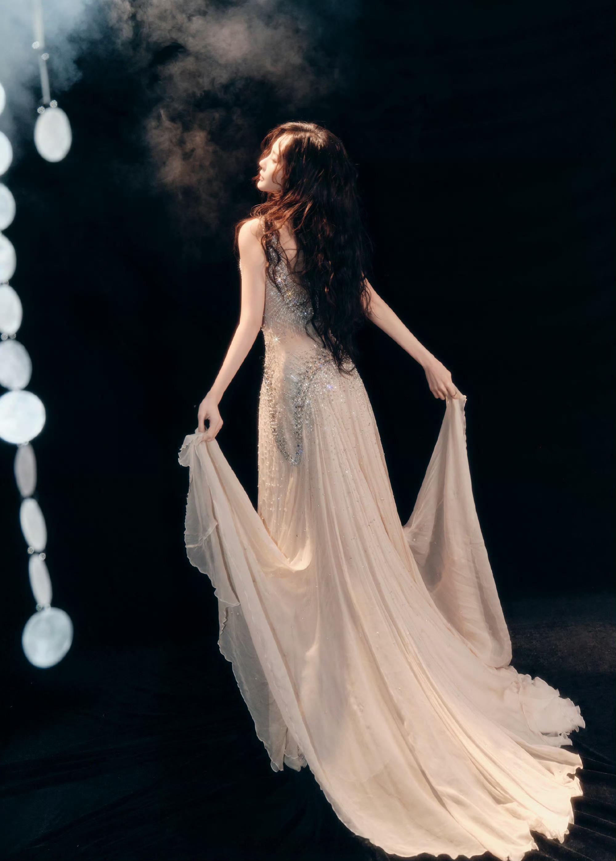 李一桐亮钻高定纱裙李一桐钻纱高定裙,你打几分