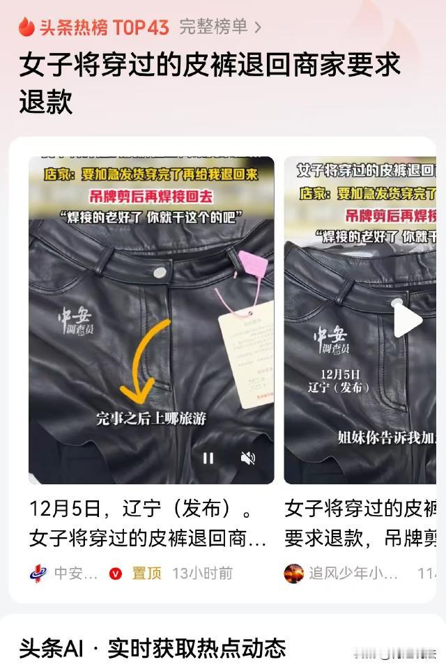 辽宁,女子卖出去一条皮短裤,买家要她加急发货,几天后皮裤被退回,女子一看顿时气炸了,皮裤上的吊牌被剪断后又焊接在了一起,裆部皱皱巴巴的,女店主吐槽:姐妹,你焊接得老好了,你就是干这个的吧! 据、中安在线等报道,12月5日,一名女店主发视频吐槽,称她几天前卖出一条皮短裤,结果没几天对方却给她退回来了。 女店主称,几天前那名女顾客买下裤子后给她留言,让她加急发货,女店主便按照顾客的要求,立即将皮裤发出去了。 谁知没过几天,这条皮短裤又被退了回来,女店主最开始很纳闷,顾客买的时候,看起来明明很满意,怎么会退货呢? 女店主打开包装一看,顿时明白到底怎么回事。 原来,裤子上的吊牌被剪断了,但是又被人焊接在了一起,女店主仔细一看,短裤裆部皱皱巴巴的,很显然是在穿着的过程中造成的,而且,对方穿的时间不短,且极不爱惜。 女店主气笑了,立即拍了个视频吐槽:“姐妹你告诉我加急发货,你在这等着我呢!加急发货然后你穿着上哪玩去,然后拍照打卡,完了你再还给我呗?” 女店主轻轻拨拉了一下吊牌,吊牌的塑料绳断了:“就这吊牌,你焊接的老好了,你专门就干那个的吧?我都没看出来。” 女店主将这个视频发出来后,有人说那个顾客素质太差了,这种白嫖党应该严查。 也有人说,女店主这皮裤质量太差了,不管咋穿,也不能穿成那样吧?再说了,既然有七天无理由退货的规则,别人不想要了就可以退。 那么,这种情况下,店家能否拒绝顾客退货? 《消费者权益保护法》赋予了消费者一定的退货权利,其中,七天无理由退货是一项重要规定。 根据《消法》第二十五条规定,经营者采用网络、电视、电话、邮购等方式销售商品,消费者有权自收到商品之日起七日内退货,且无需说明理由,但下列商品除外: (一)消费者定做的; (二)鲜活易腐的; (三)在线下载或者消费者拆封的音像制品、计算机软件等数字化商品; (四)交付的报纸、期刊。 除前款所列商品外,其他根据商品性质并经消费者在购买时确认不宜退货的商品,不适用无理由退货。 一般交易过程中,即便适用七天无理由退货的交易场景,但并不意味着任何情况下都能适用七天无理由退货。 七天无理由退货有一个重要前提,即消费者退货的商品应当完好。 《网络购买商品七日无理由退货暂行办法》第八条规定,商品能够保持原有品质、功能,商品本身、配件、商标标识齐全的,视为商品完好。 消费者基于查验需要而打开商品包装,或者为确认商品的品质、功能而进行合理的调试不影响商品的完好。 本事件中,皮短裤的吊牌被剪断后又焊接在一起,裆部有明显穿着痕迹,这显然不符合商品完好的标准。 吊牌是商品的重要标识,剪断后焊接破坏了其完整性。裆部的穿着痕迹表明商品在使用过程中已经受到了一定程度的损耗,无法保持原有品质。 因此,该皮短裤已经不满足七天无理由退货的条件。 根据上述法律规定,由于买家退回的皮短裤不符合商品完好的要求,店家有权拒绝退货。 《消法》和相关法规在保障消费者权益的同时,也注重维护经营者的合法权益。 如果允许消费者在商品已经严重受损的情况下随意退货,将对经营者的利益造成损害,也违背了公平交易的原则。 此外,女店主按照买家的要求加急发货,已经履行了自己的合同义务。而买家在购买时表现出满意并要求加急发货,之后却退回有明显使用痕迹的商品,这种行为有违诚实信用原则。 最后,您是否有退货经历?您认为这种情况下,是否应该拒绝顾客退货?