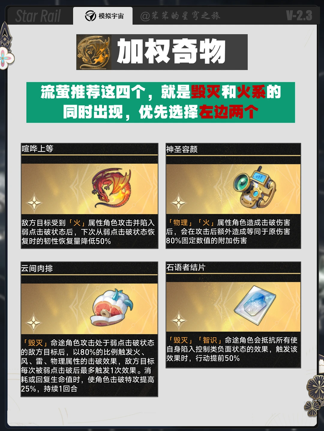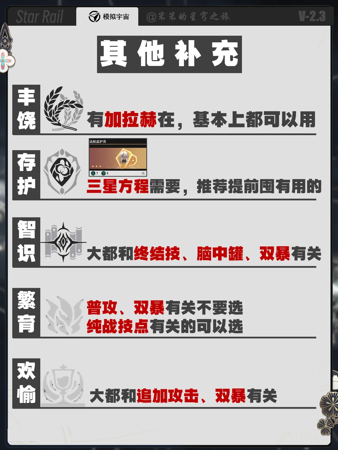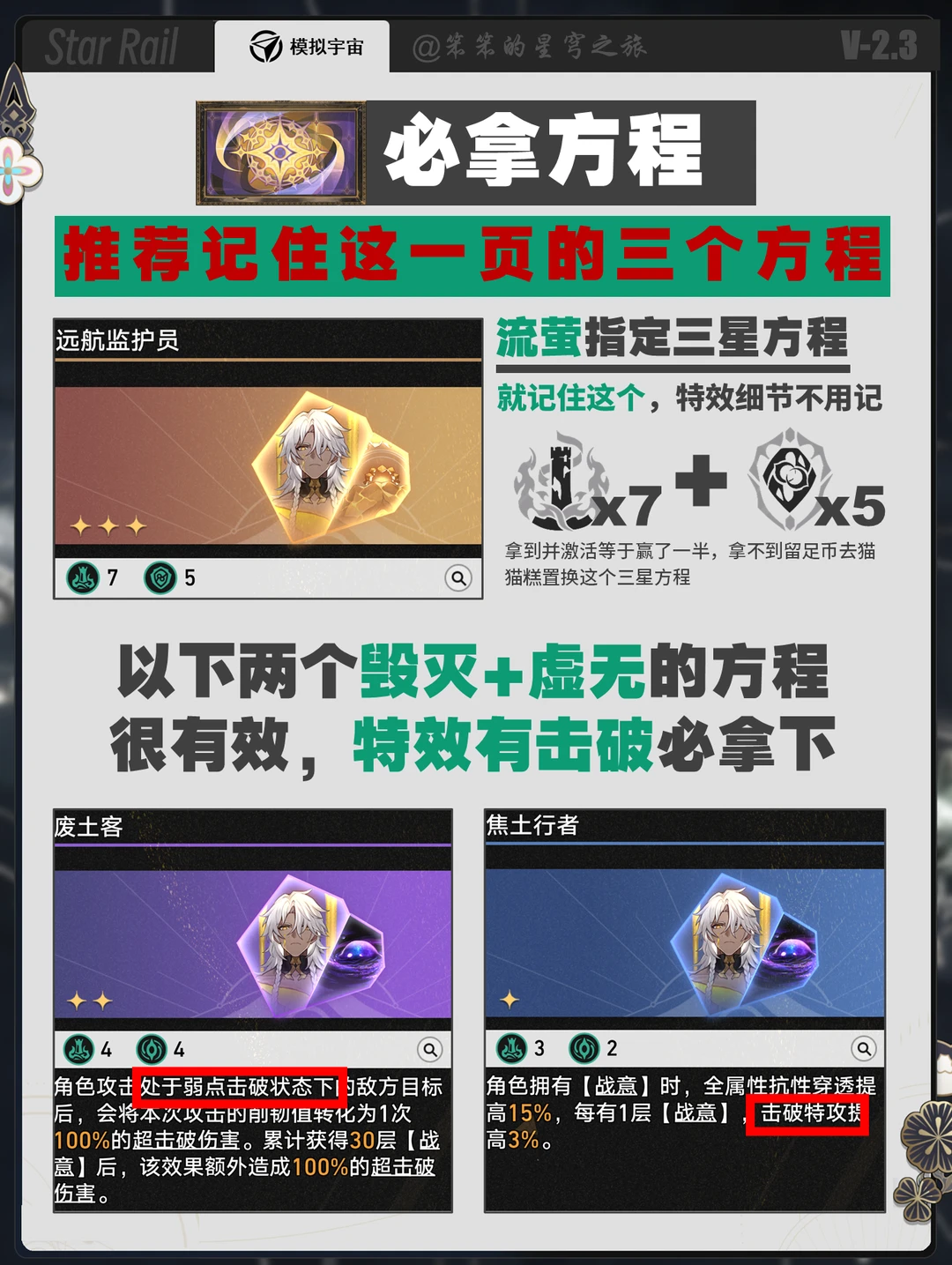 🐱大家好,我是笨笨的铲屎官 差分宇宙大家都打到难度几了 笨笨给大家整理了流萤通关差分宇宙的技巧 给流萤刷到这些方程和祝福 👉笨笨的提供的祝福选择是基于第一页的配队的 如果大家选择了砂金(追加攻击) 以及其他的相关的角色,那么对应的祝福也要酌情选择 通关协议六就轻轻松松了