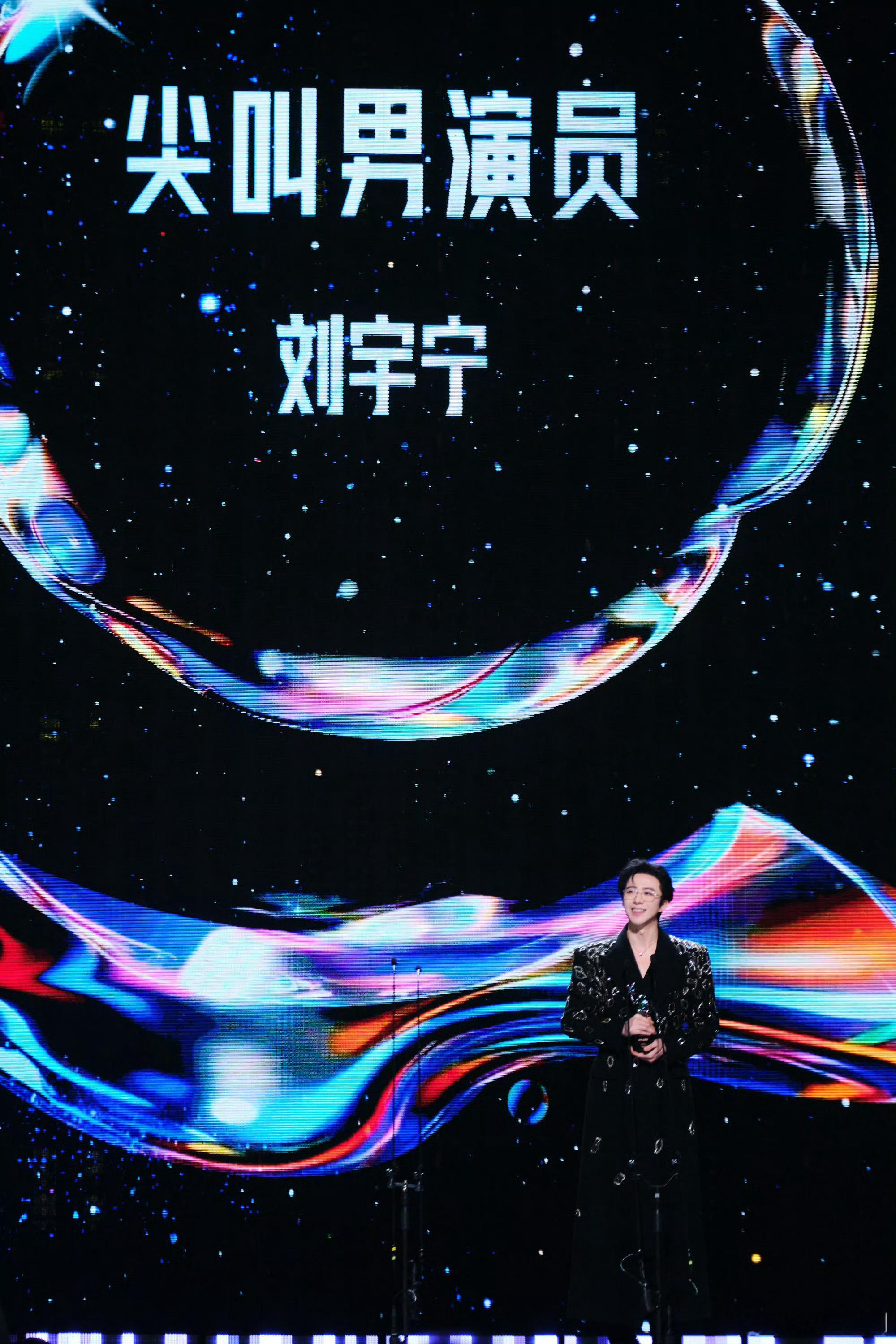 刚再次看完昨晚刘宇宁拿奖视屏,感动持续🥹 。刘宇宁拿下爱奇艺尖叫男演员,是他七